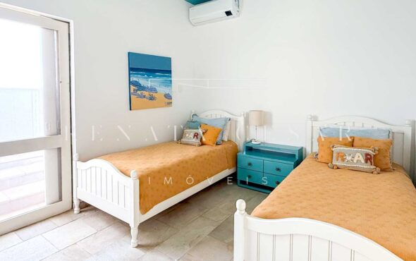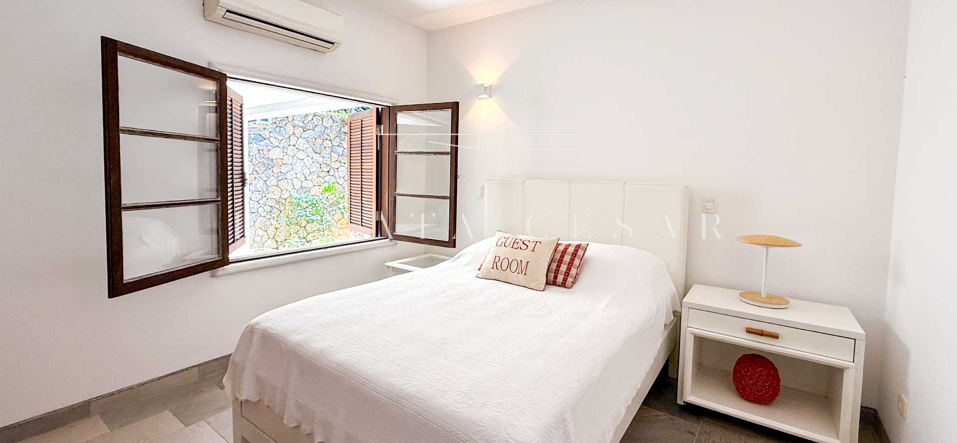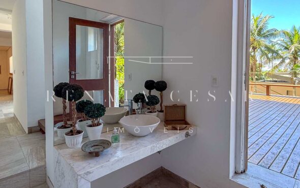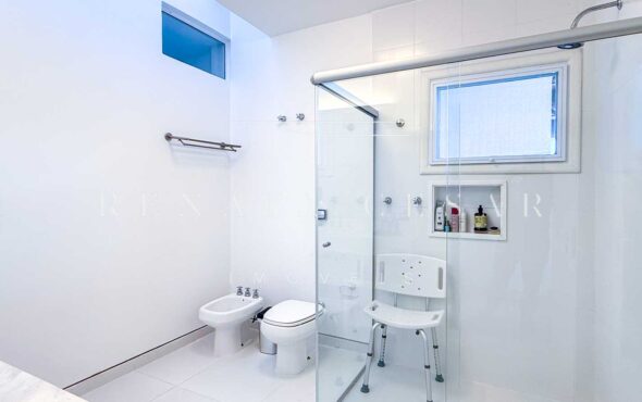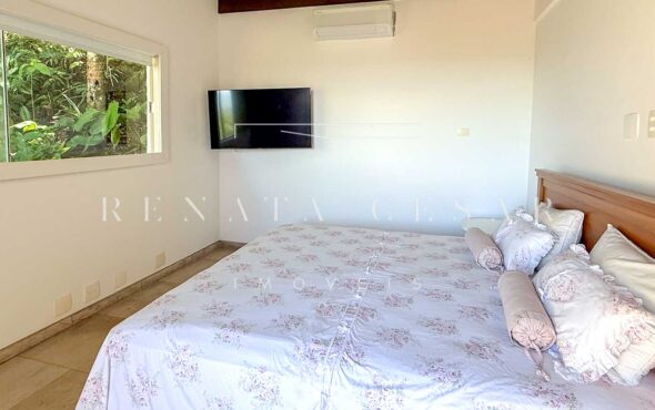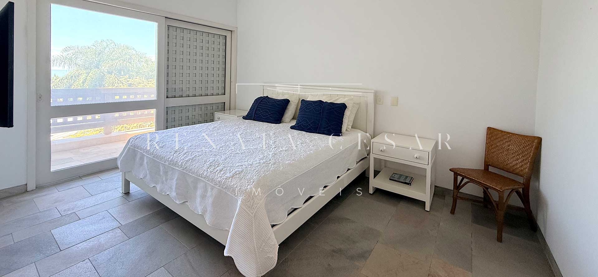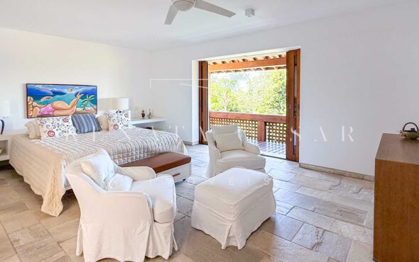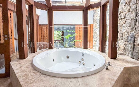 São 06 suítes completas, todas amplas, climatizadas e com janelas generosas, algumas com varanda. A suíte principal é enorme, também com vista-mar, banheiro duplo e uma banheira de hidromassagem maravilhosa para relaxar ao fim do dia.