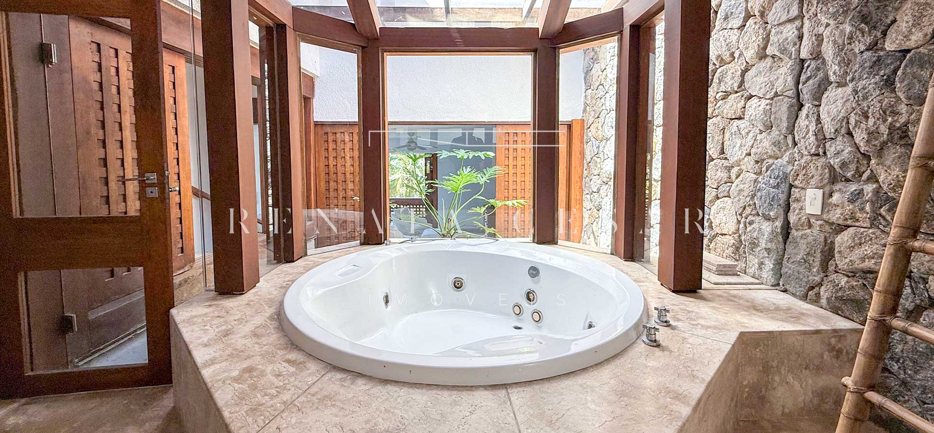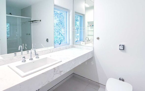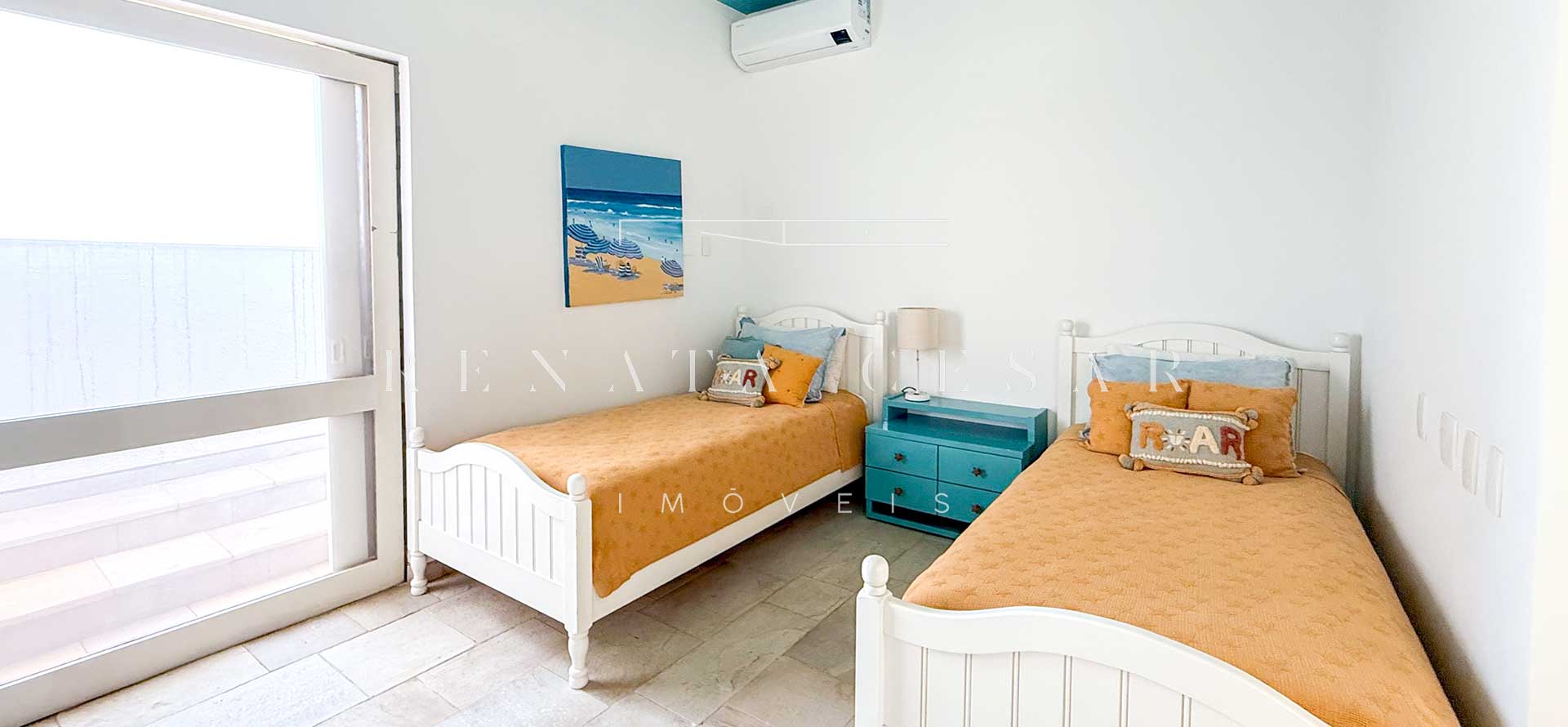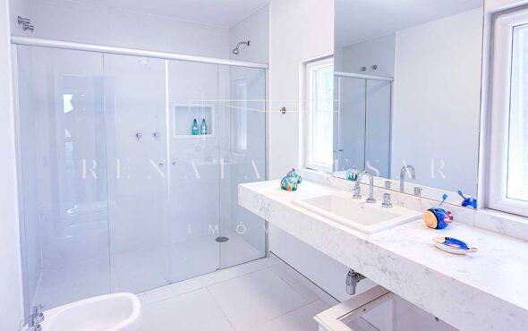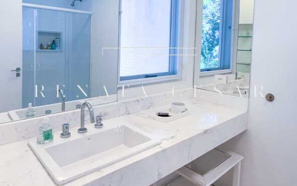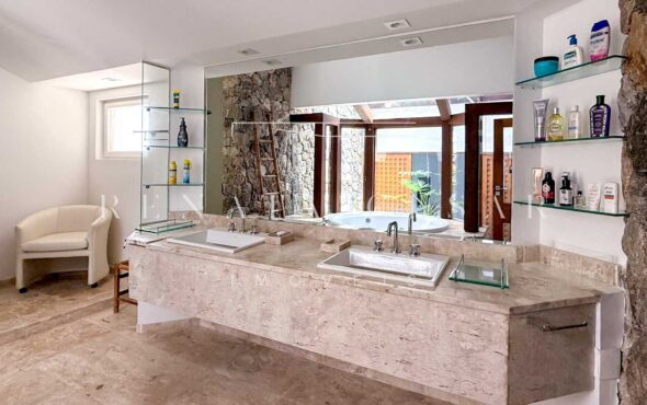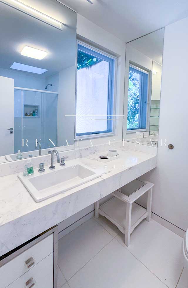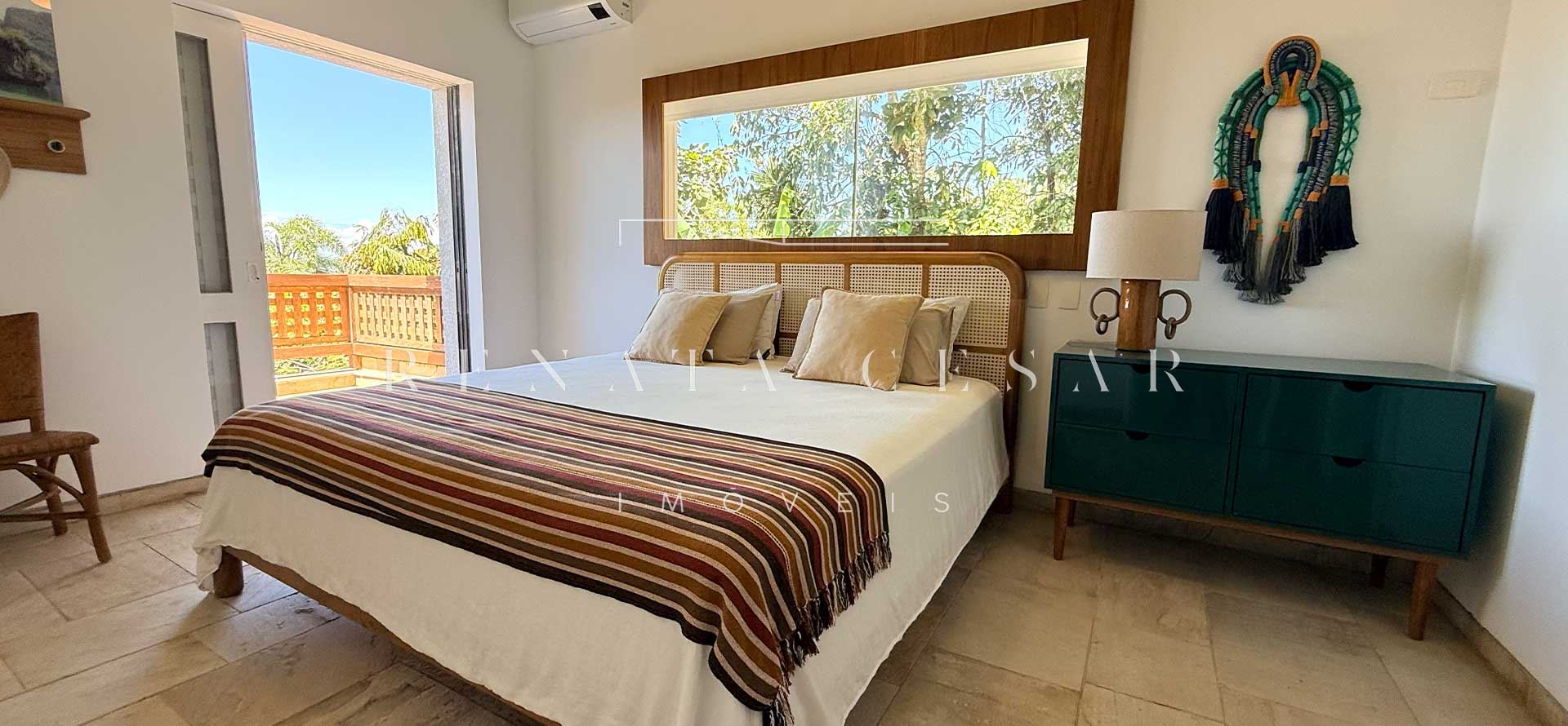 São 06 suítes completas, todas amplas, climatizadas e com janelas generosas, algumas com varanda. A suíte principal é enorme, também com vista-mar, banheiro duplo e uma banheira de hidromassagem maravilhosa para relaxar ao fim do dia.
