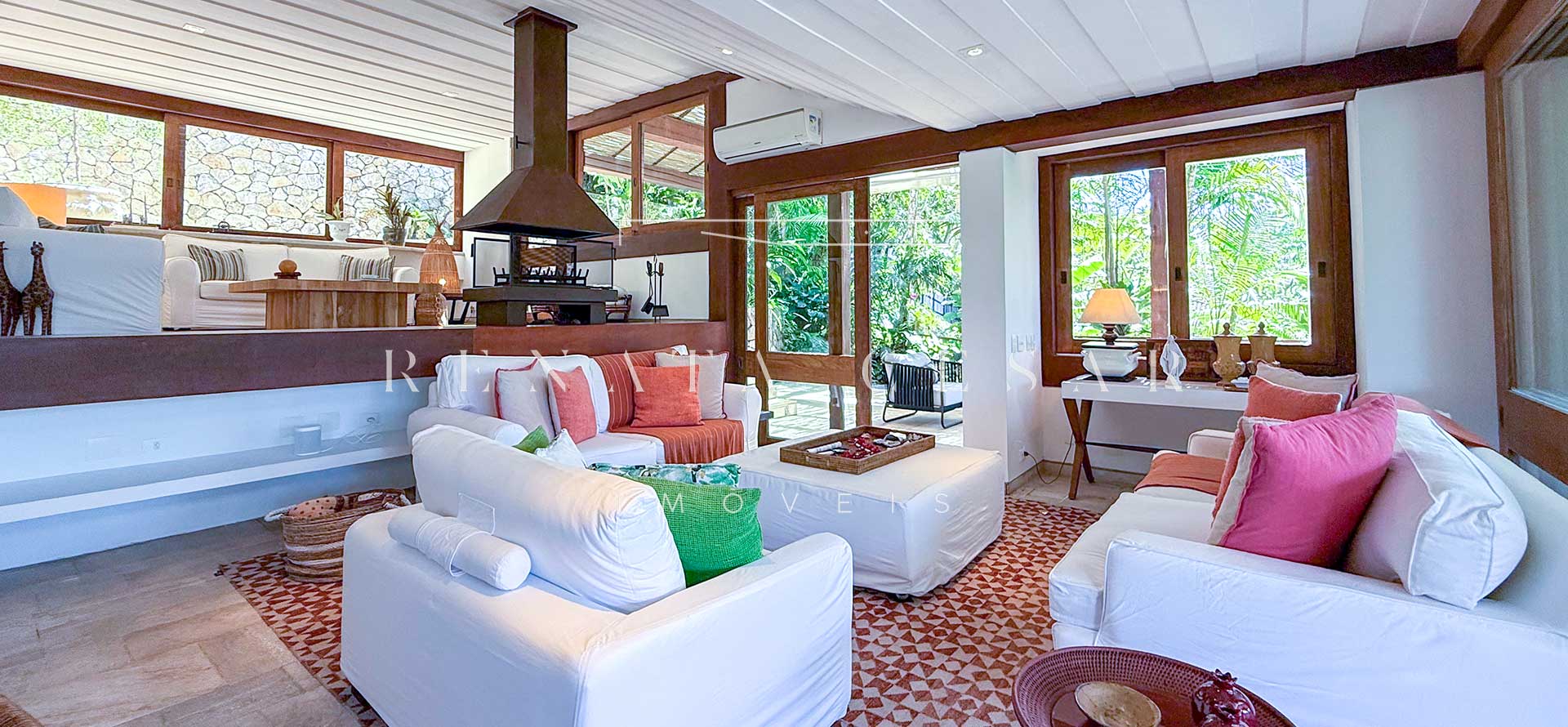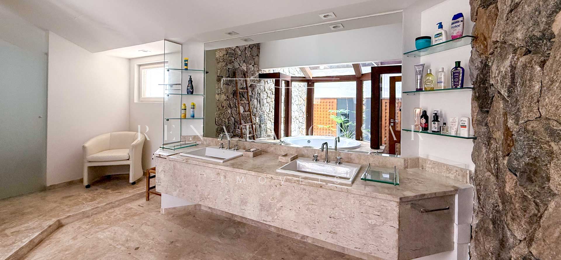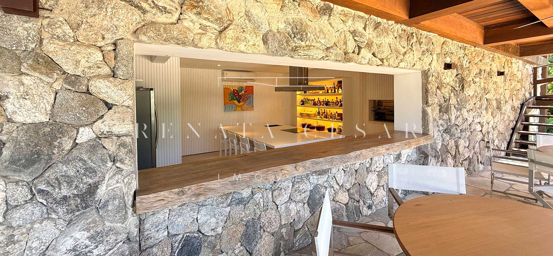 Ambientes integrados, acabamentos sólidos em pedra, granito e madeira e um estilo autêntico e atemporal. A casa é moderna e aconchegante, ao mesmo tempo oferecendo muito espaço para reunir e relaxar.