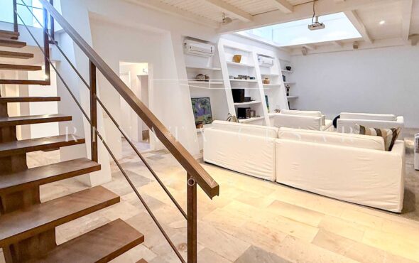 Ambientes integrados, acabamentos sólidos em pedra, granito e madeira e um estilo autêntico e atemporal. A casa é moderna e aconchegante, ao mesmo tempo oferecendo muito espaço para reunir e relaxar. Possui elevador que chega a quase todos os andares e recebe o sol da manhã criando uma atmosfera deliciosa.