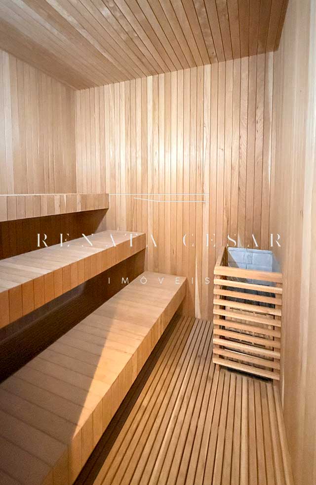 O lazer inclui uma excelente área externa, muito ensolarada e ótima para receber e entreter, além de piscina e sauna. A praia fica a apenas 70 metros, dois minutos de caminhada.