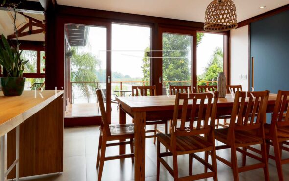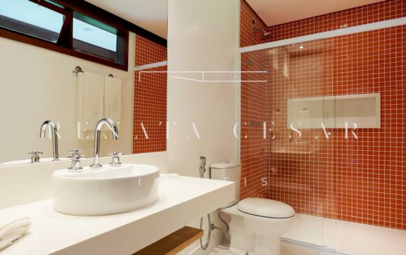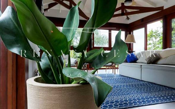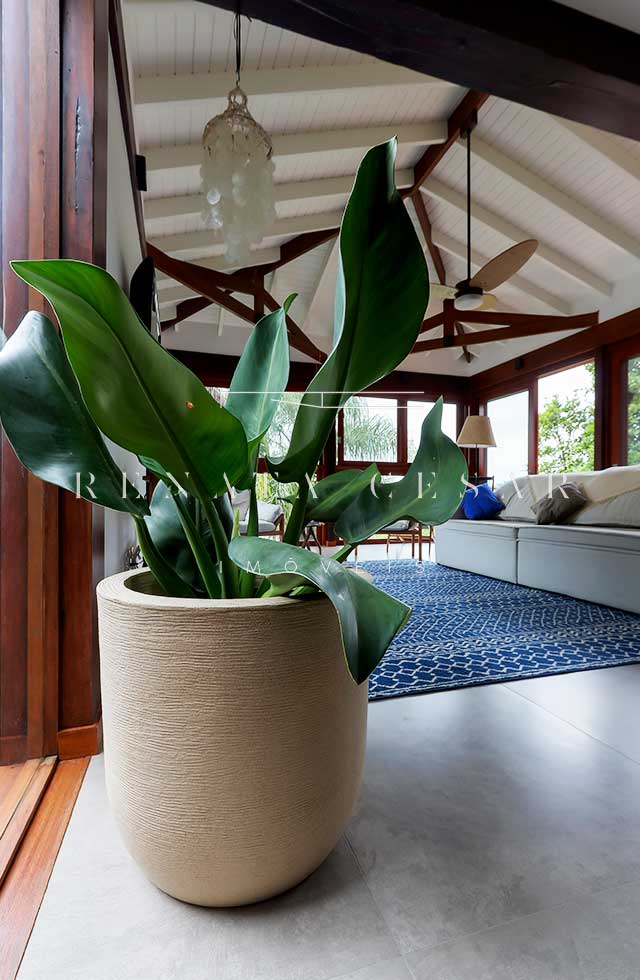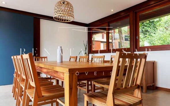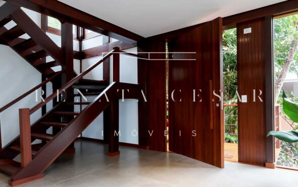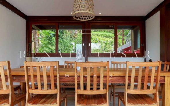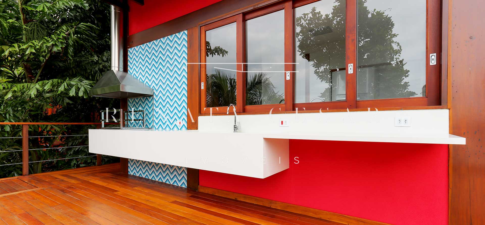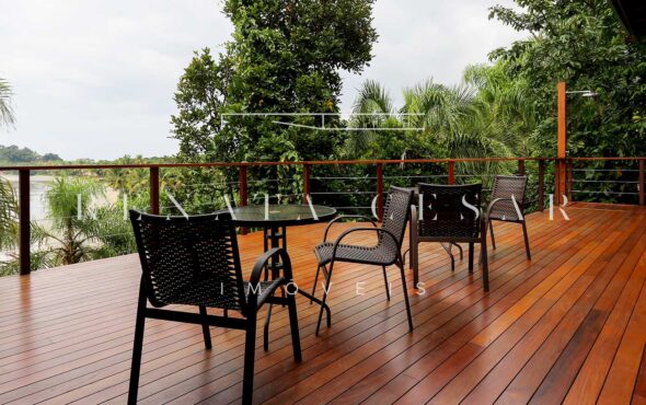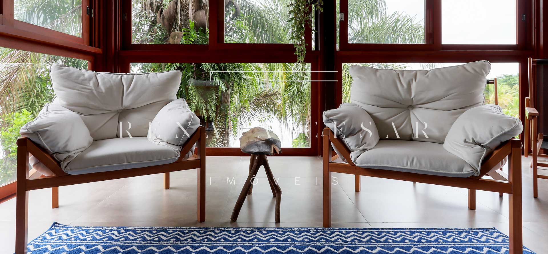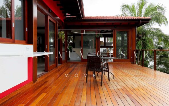 Na área externa, há um terraço generoso com churrasqueira, perfeito para aquelas suas festas e reuniões familiares. Tomar o sol da manhã ali entre as árvores é outra atividade fortemente recomendada. Bateu a vontade de banhar na água? Logo ali, a 100 metros, o mar está à sua disposição, além da cachoeira do Iporanga. Um luxo.