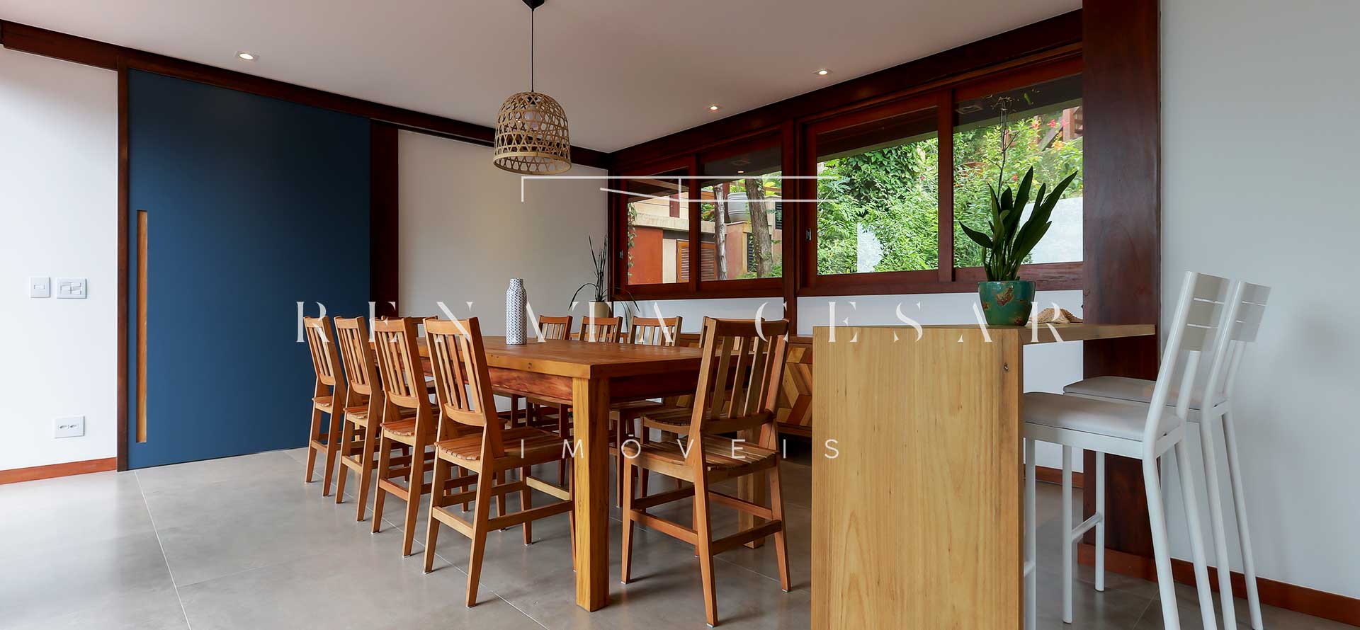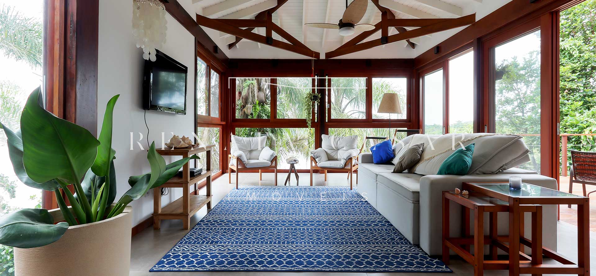 Localizada a apenas 100 metros da Praia do Iporanga, esta casa reúne um mar de vantagens: uma vista pro mar imperdível, uma reforma contemporânea novinha em folha, e uma localização sem igual: colada no mar, na cachoeira e no restaurante do Condomínio Cachoeira.