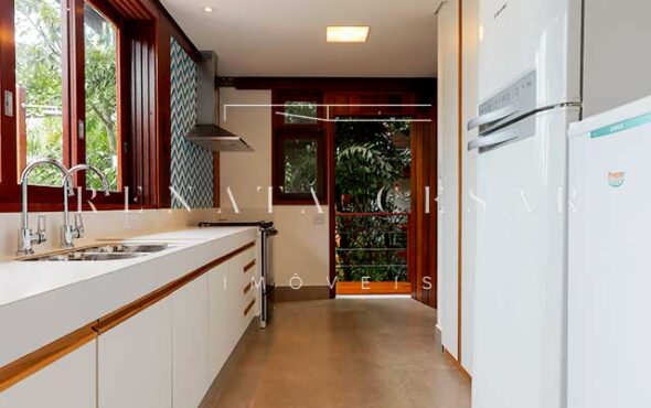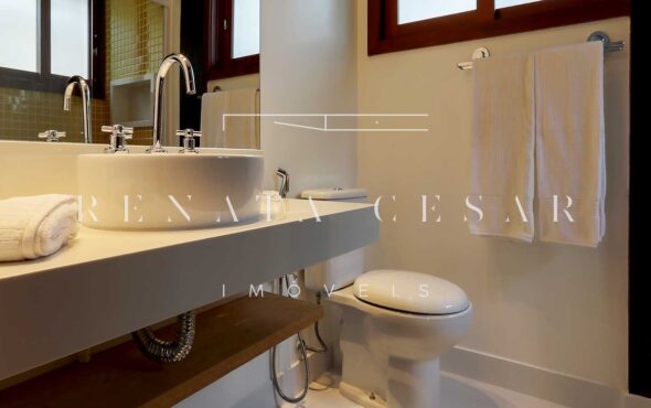 A casa possui 04 dormitórios, sendo 02 suítes, tudo bem conservado, com janelas generosas e espaços abertos para organização. Uma das suítes fica isolada da casa, proporcionando mais privacidade. O clima de tranquilidade prevalece, e o som que entra pelas janelas você escolhe: cachoeira ou ondas do mar.