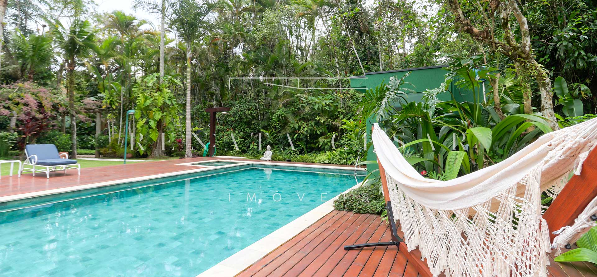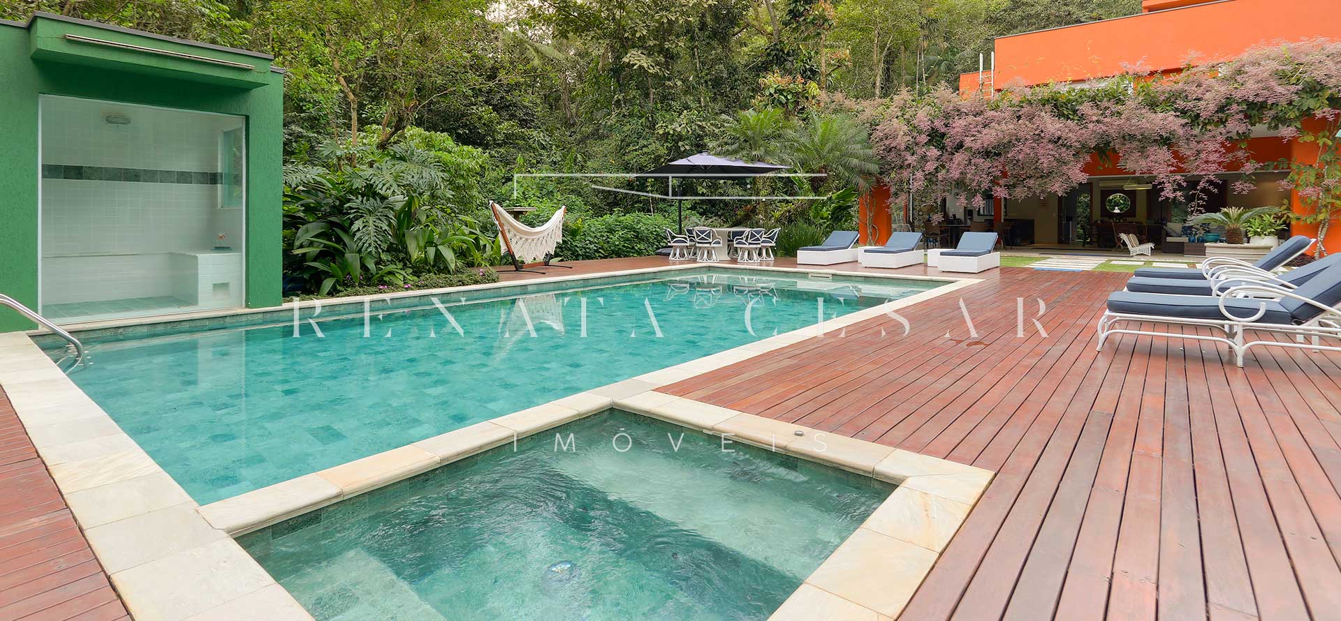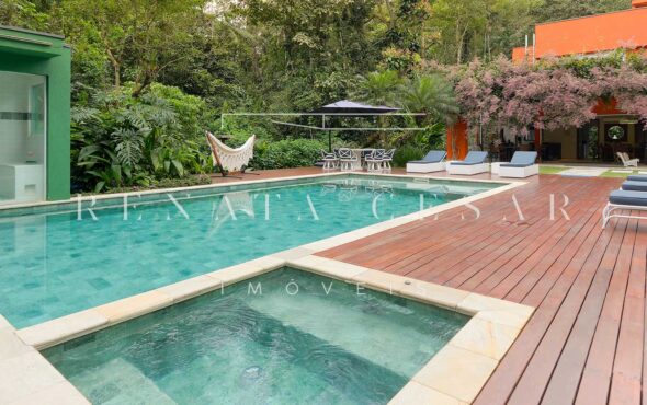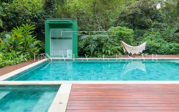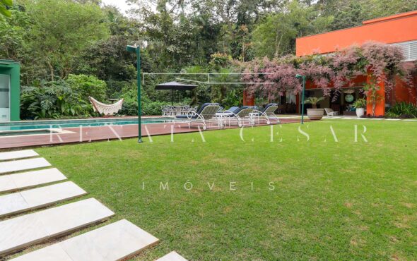 Aquela parte da casa que faz os olhinhos brilharem? Tudo que envolve lazer. O imóvel conta com área gourmet com churrasqueira, sauna, jacuzzi, um gramadão enorme com piscina. É muito espaço para aproveitar os dias de sol ou mesmo os dias de chuva.
