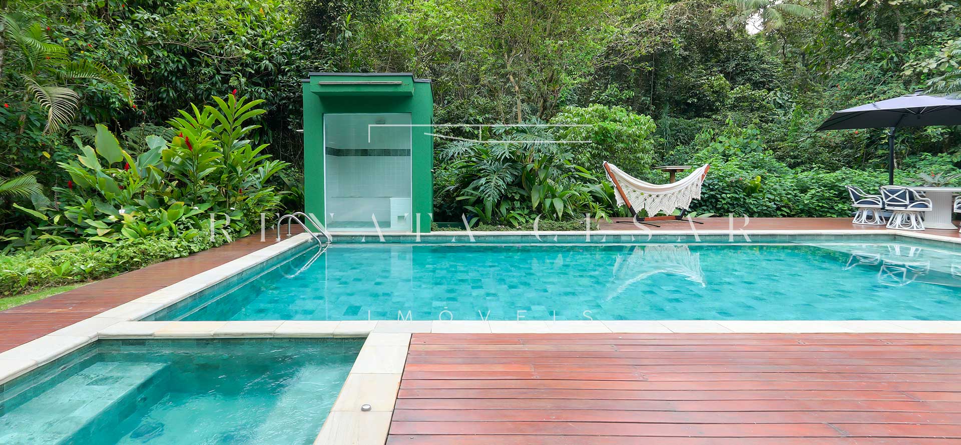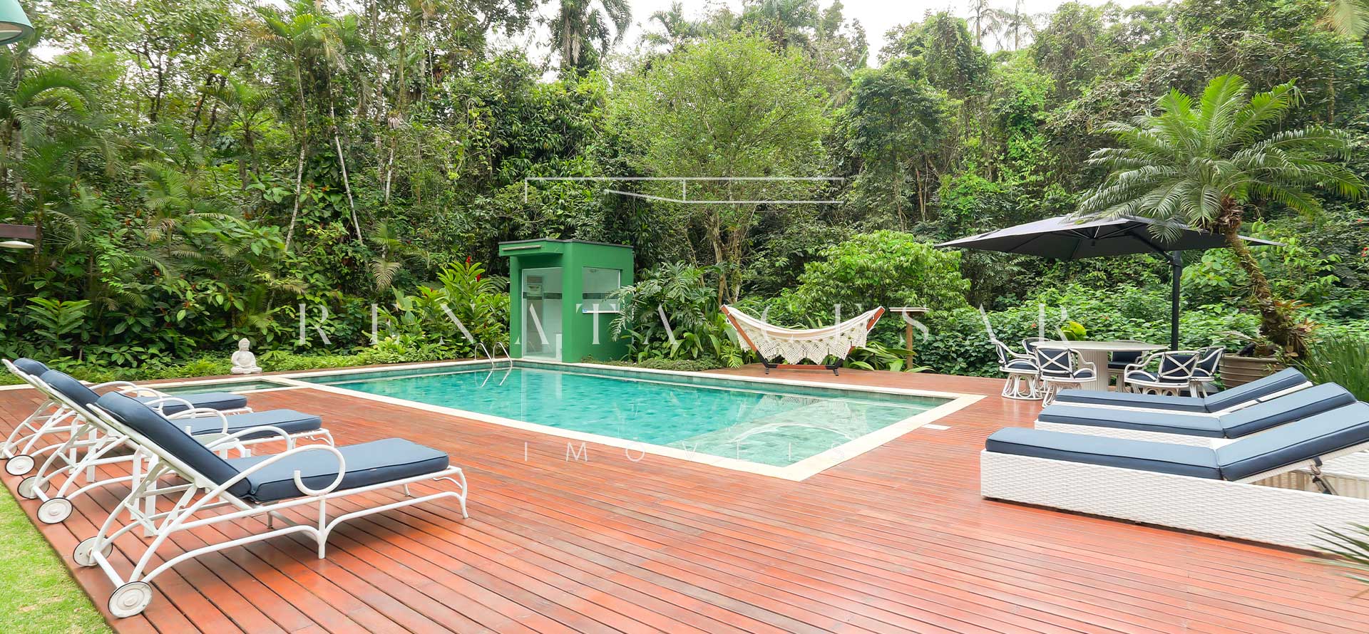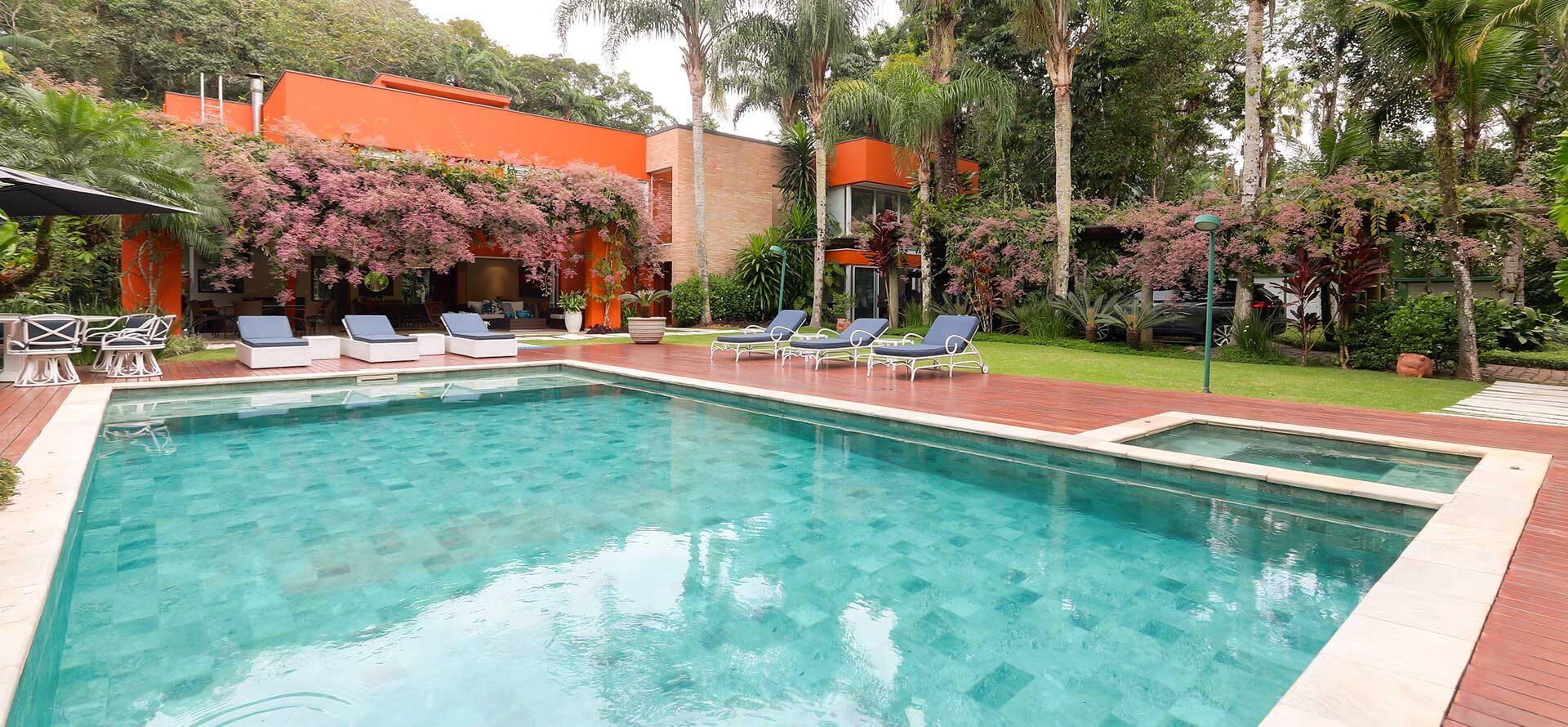 Aquela parte da casa que faz os olhinhos brilharem? Tudo que envolve lazer. O imóvel conta com área gourmet com churrasqueira, sauna, jacuzzi, um gramadão enorme com piscina. É muito espaço para aproveitar os dias de sol ou mesmo os dias de chuva.