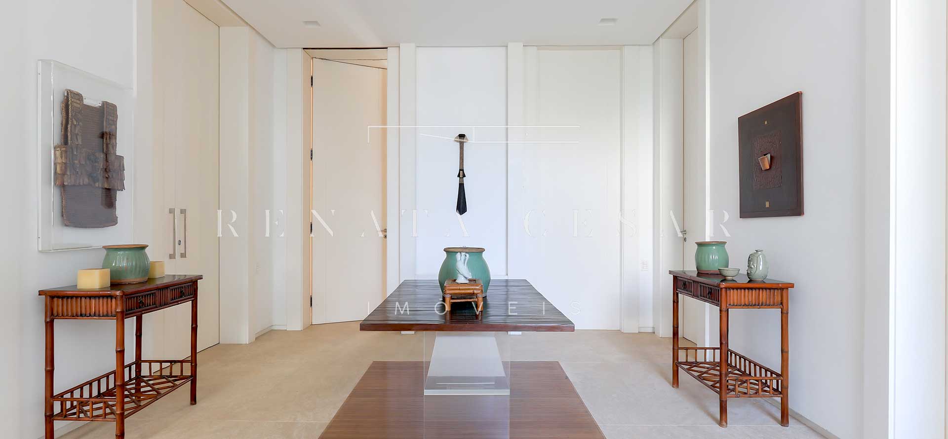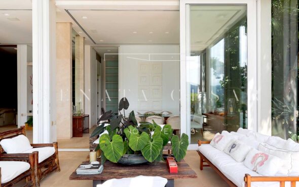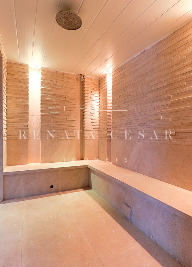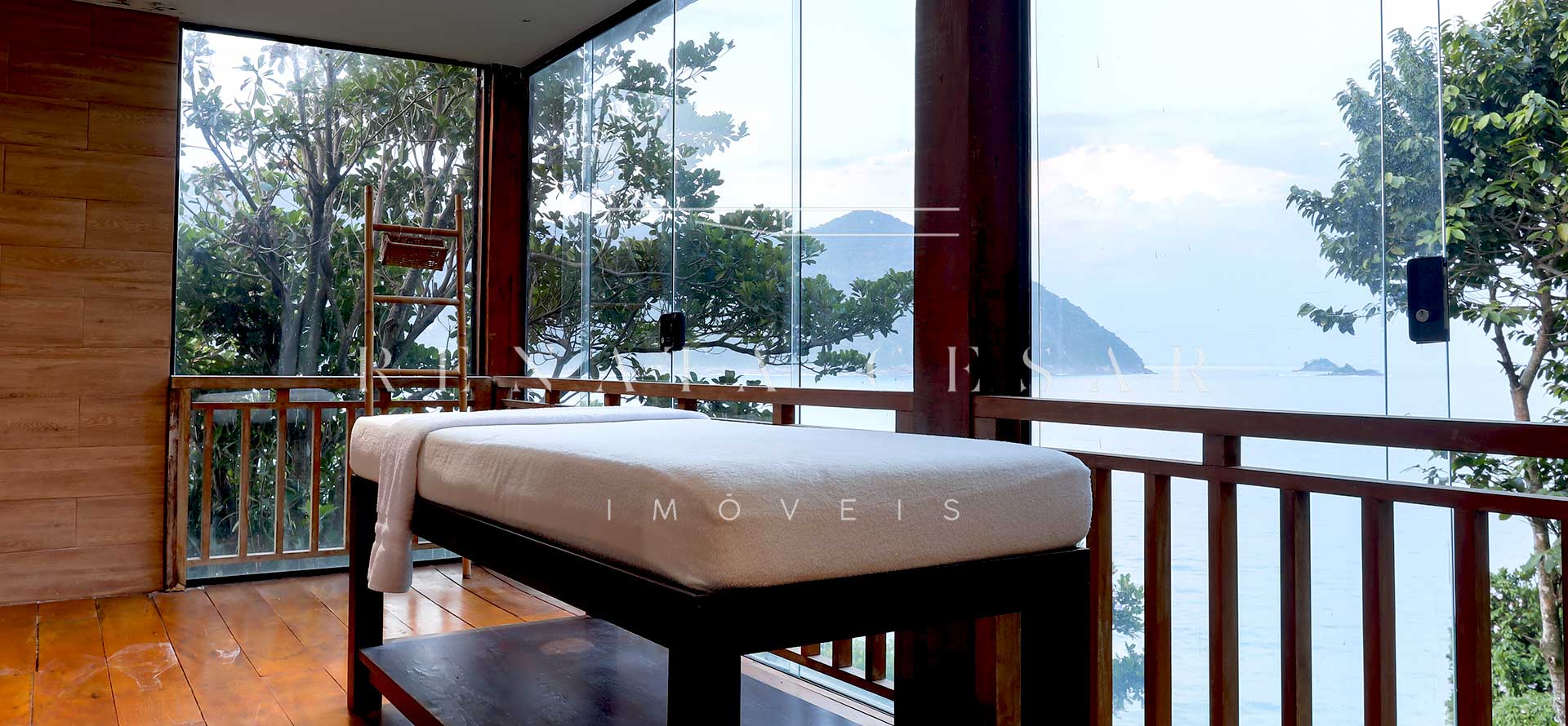 O ar de plenitude que preenche cada cômodo com acabamentos de alto padrão, design sofisticado e uma combinação espetacular de madeira, vidro e concreto também se estende para o lazer da casa. Ela conta um spa com jacuzzi, sauna, um grande espaço de academia e massagem, tudo com vista desimpedida para o mar.