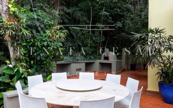 Um living amplo, com pé-direito duplo e muitos espaços para reunir se estende para o terraço gostoso cercado por natureza. A área social ainda conta com sala de jantar, sala de jogos e home theater. A cozinha é ampla, para dois ambientes e totalmente equipada.