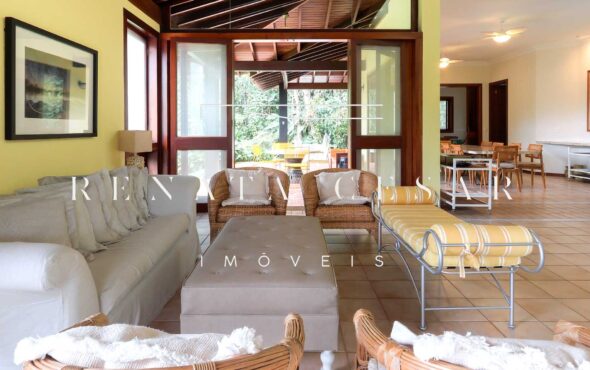 Localizada na parte baixa do Condomínio Iporanga, a 150 metros da Praia de São Pedro, esta casa é grande, supercompleta e perfeita para um refúgio de temporada.