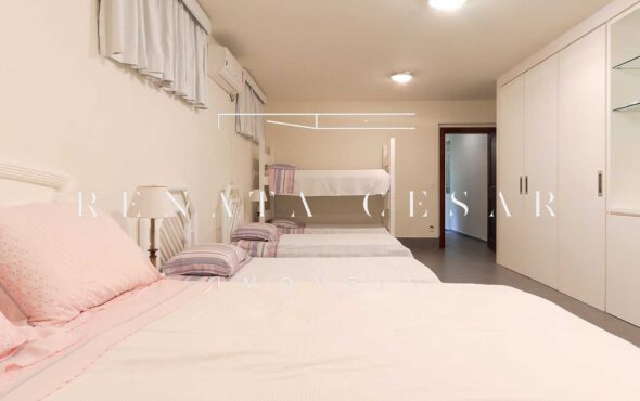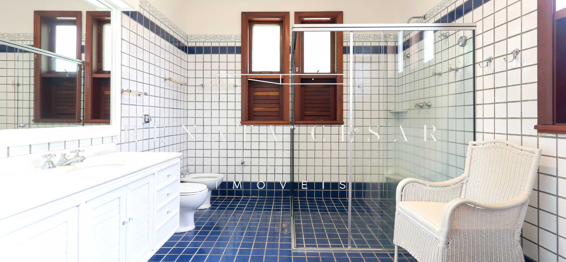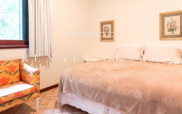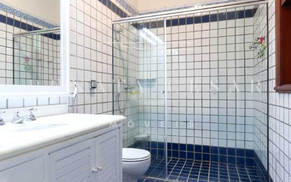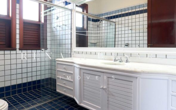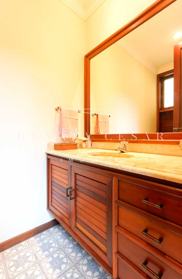 A casa conta com 07 suítes no total, distribuídas em pisos diferentes. Duas estão no andar social, quatro no primeiro andar, e uma no piso da garagem, sendo esta bem grande e com um banheiro enorme. Todas estão equipadas com ar-condicionado, janelas generosas e bons banheiros, para descansar à vontade.