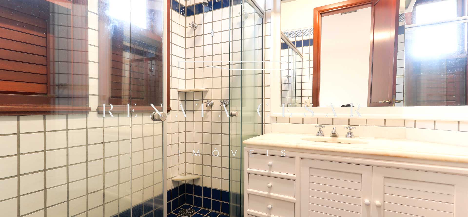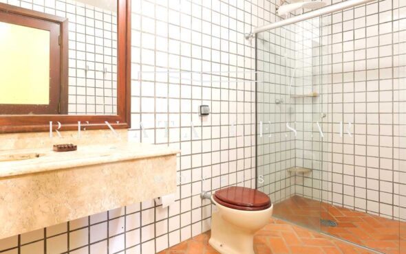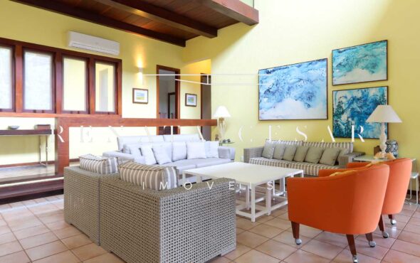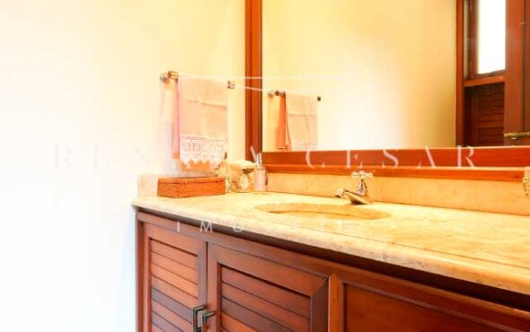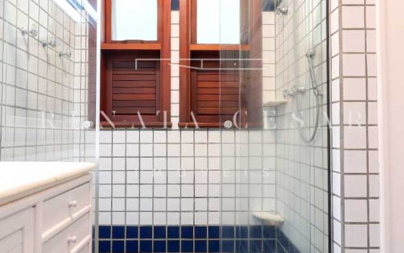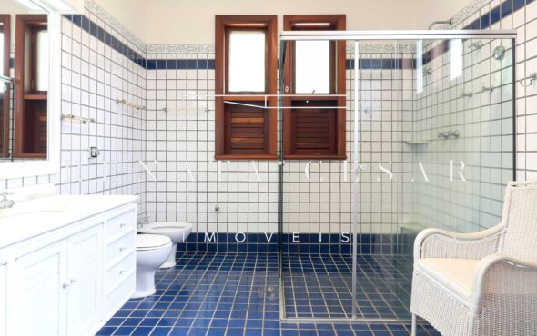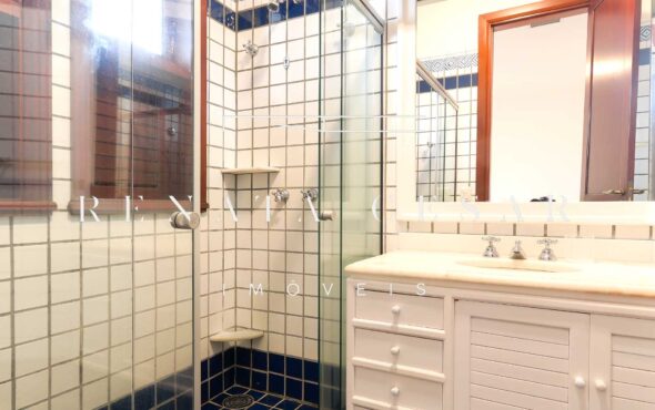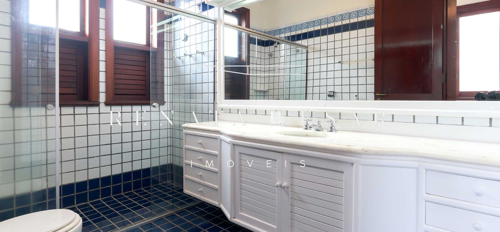 A casa conta com 07 suítes no total, distribuídas em pisos diferentes. Duas estão no andar social, quatro no primeiro andar, e uma no piso da garagem, sendo esta bem grande e com um banheiro enorme. Todas estão equipadas com ar-condicionado, janelas generosas e bons banheiros, para descansar à vontade.
