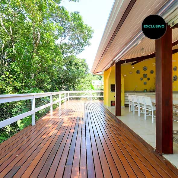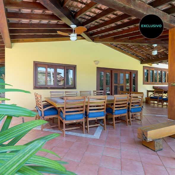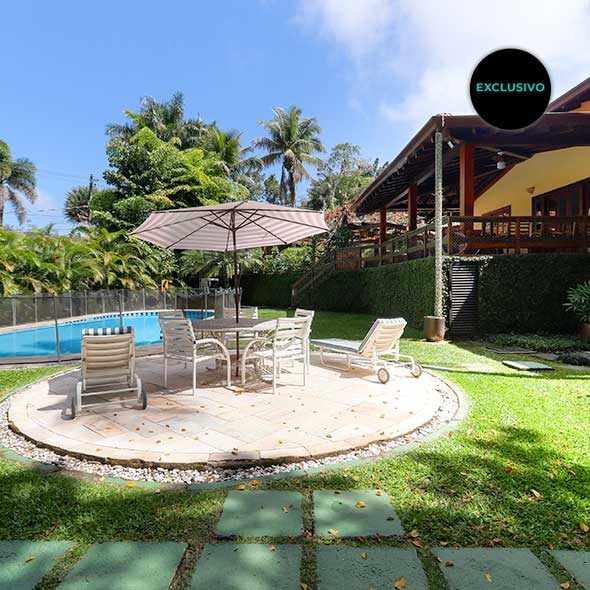 Ver foto na galeriaNa área externa há uma mesa grande com terraço, rede e vários espaços para conviver. A infra de lazer conta com piscina, deck, sauna e ainda um bar. Há um salão grande ao lado da casa que poderá ser utilizado como sala de jogos, academia ou brinquedoteca.