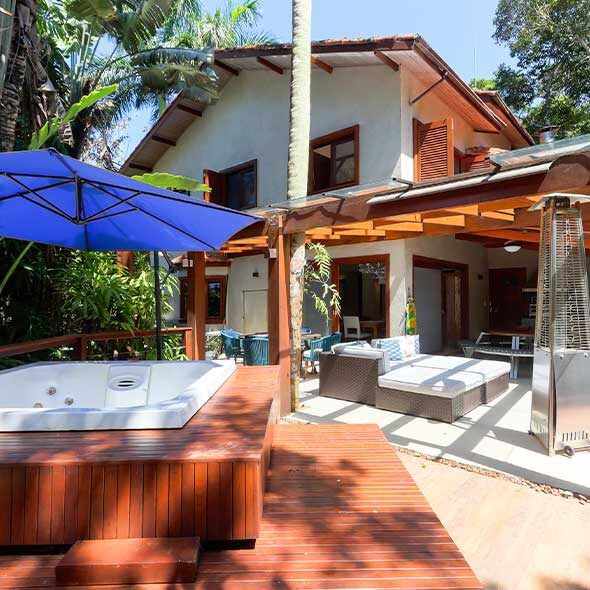 O terreno é bem protegido pela mata e quase não se vê os vizinhos, criando um clima excelente de tranquilidade. As praias de São Pedro e Conchas estão a aproximadamente 800 metros da casa, enquanto a Praia de Iporanga está a 900 metros.