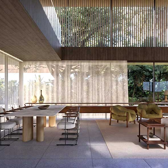 Já licenciado e com projeto aprovado, o terreno está pronto para receber uma residência incrível com projeto da arquiteta Claudia Villela. Destaca-se a atmosfera elegante, com tons neutros, e toques de madeira para trazer aconchego. A área social é toda integrada e a casa promete uma área externa incrível, com espaço gourmet e piscina. Suítes com varanda e um belo home theater também estão entre os destaques da casa. Vale a pena conhecer os detalhes do projeto, que está localizado a cerca de 750 metros da Praia de Iporanga.