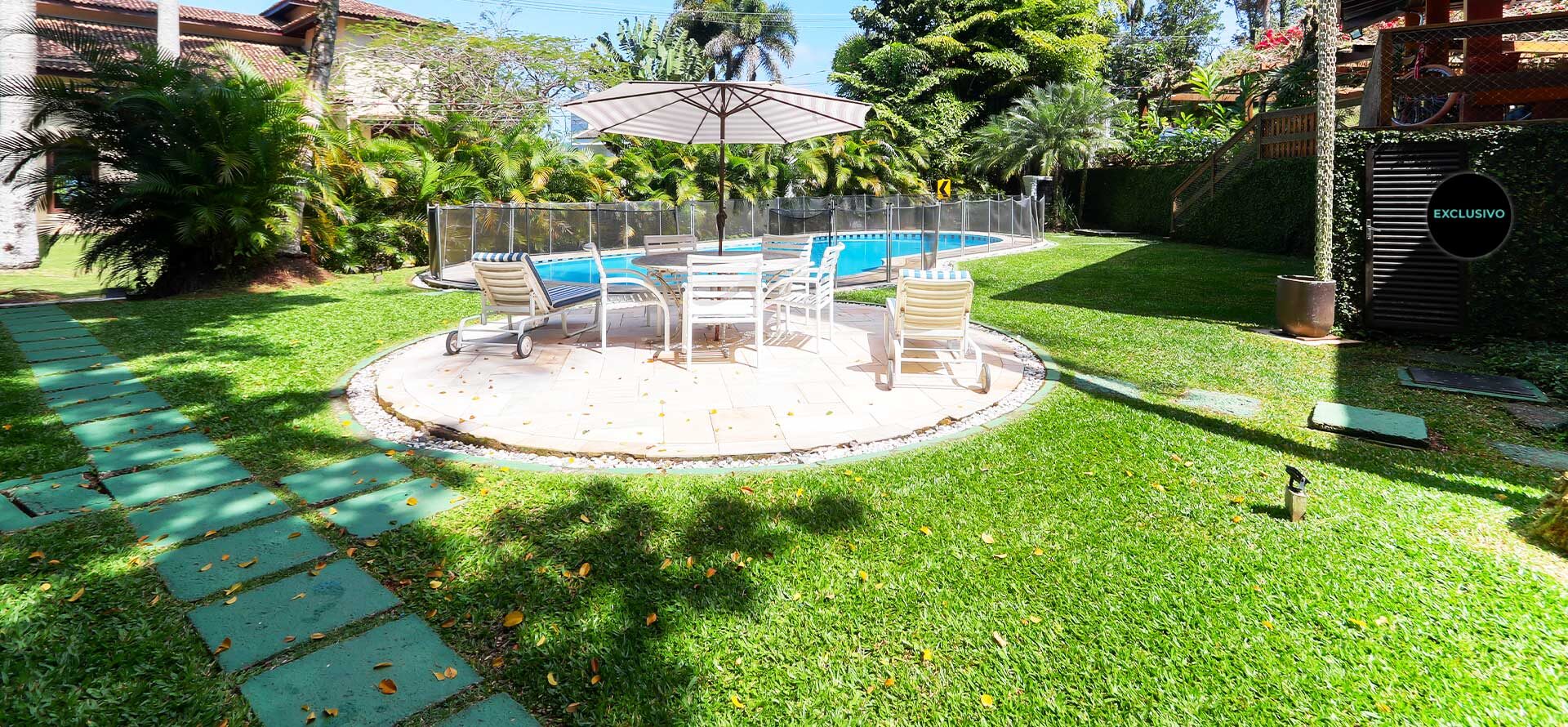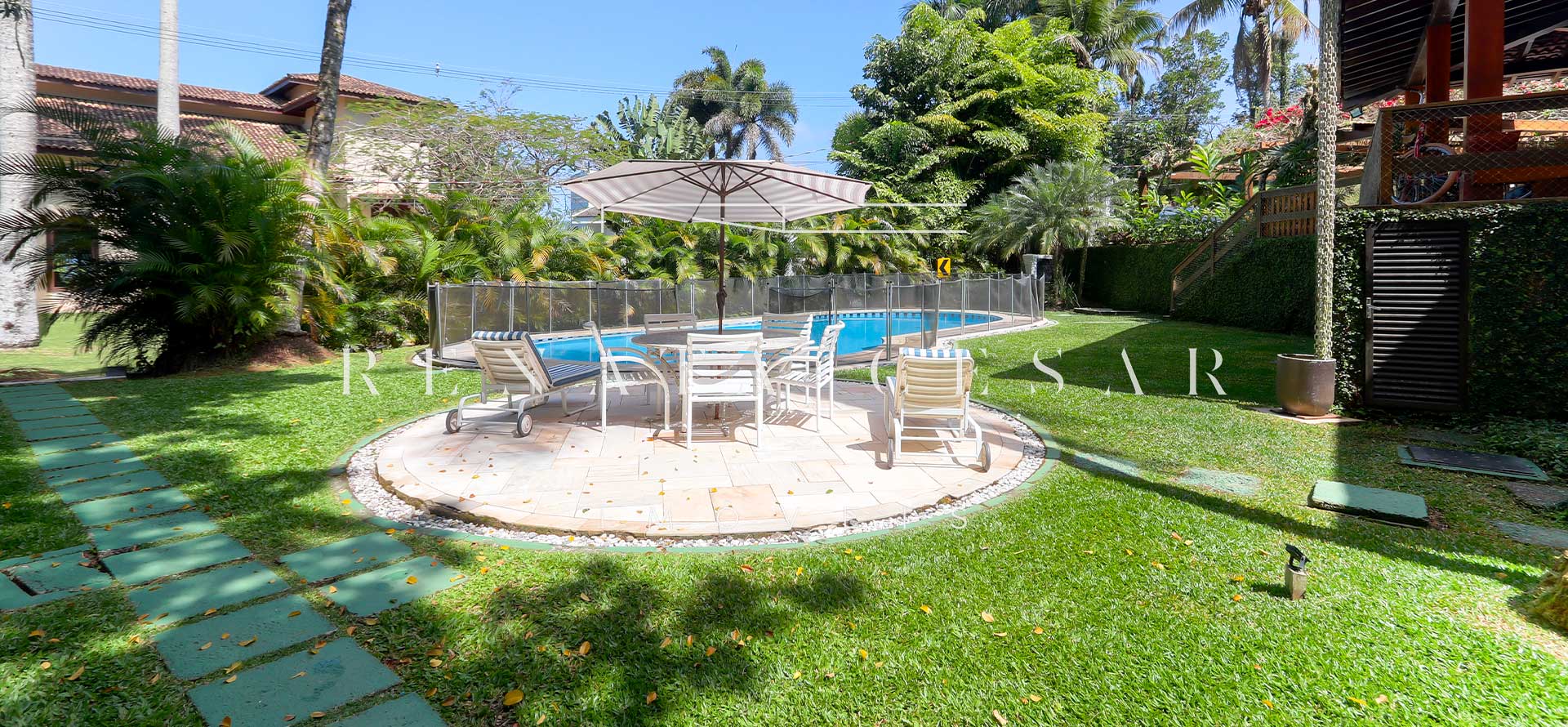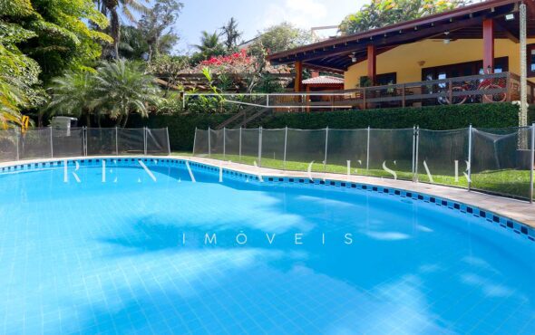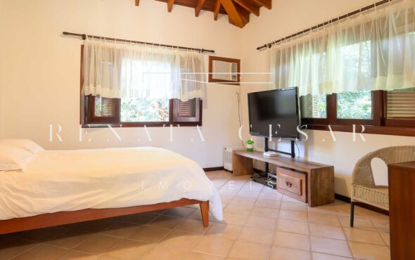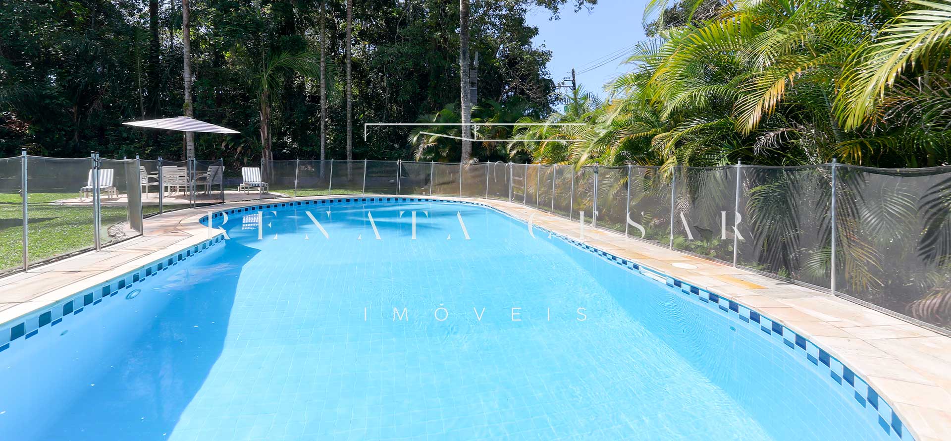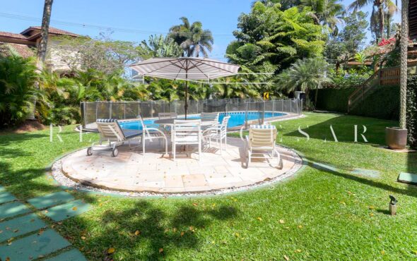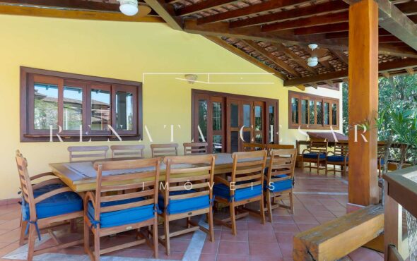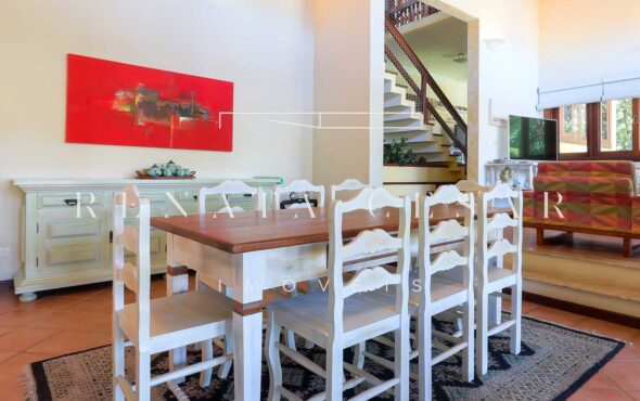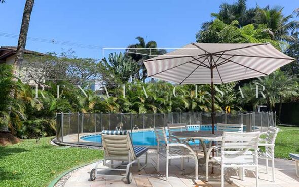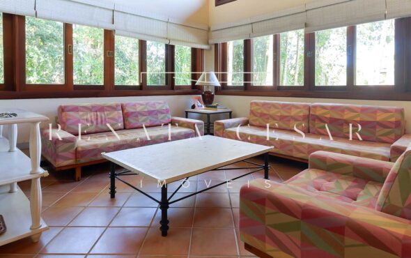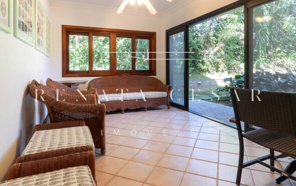 No piso inferior há um bom gramado e uma piscina grande, com excelente exposição solar. Há ainda uma sala multiuso com bar, adega e lavabo, que pode ser transformada em brinquedoteca, academia ou até um home theater. A casa fica a aproximadamente 750 metros da Praia de São Pedro, e 900 metros da Praia de Iporanga.