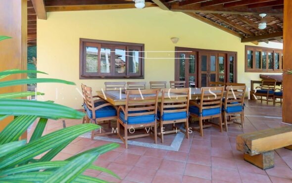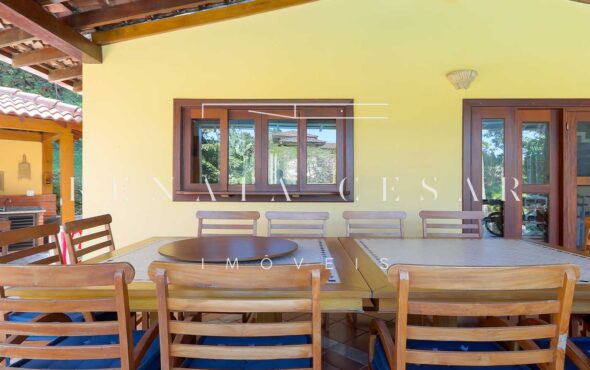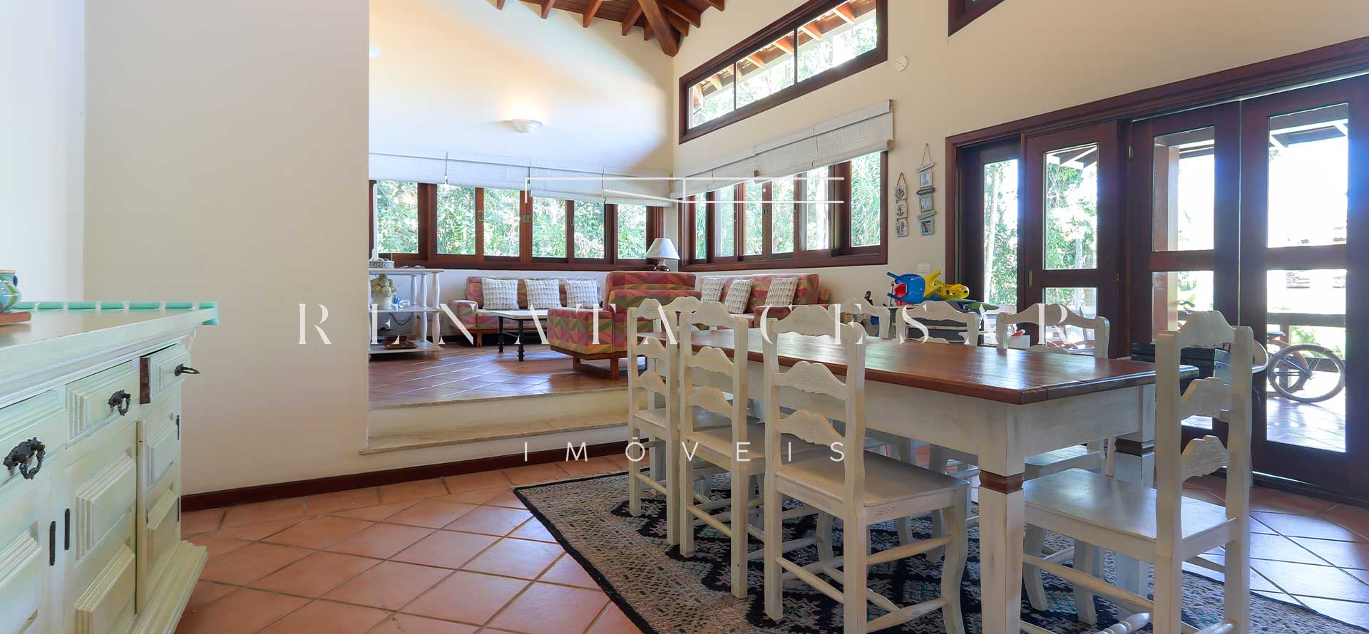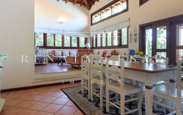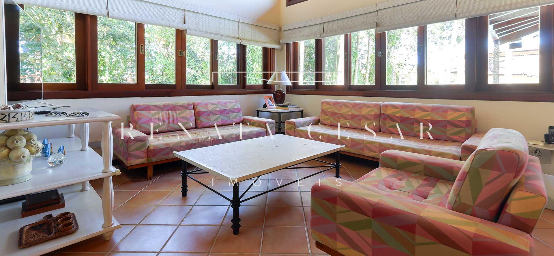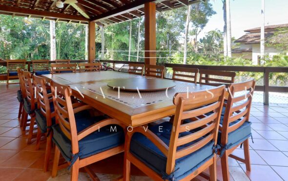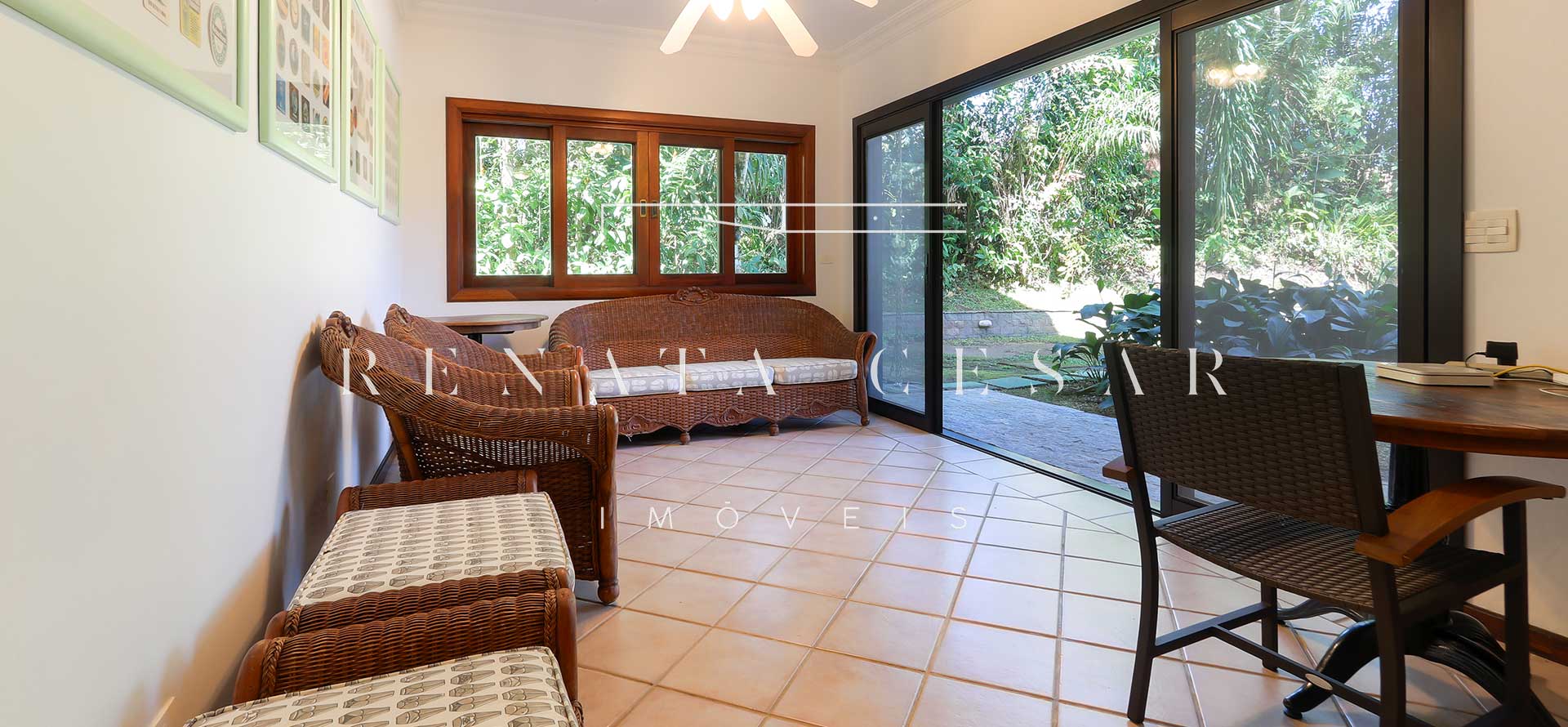 No piso inferior há um bom gramado e uma piscina grande, com excelente exposição solar. Há ainda uma sala multiuso com bar, adega e lavabo, que pode ser transformada em brinquedoteca, academia ou até um home theater. A casa fica a aproximadamente 750 metros da Praia de São Pedro, e 900 metros da Praia de Iporanga.