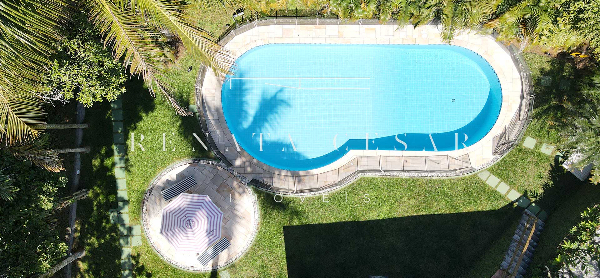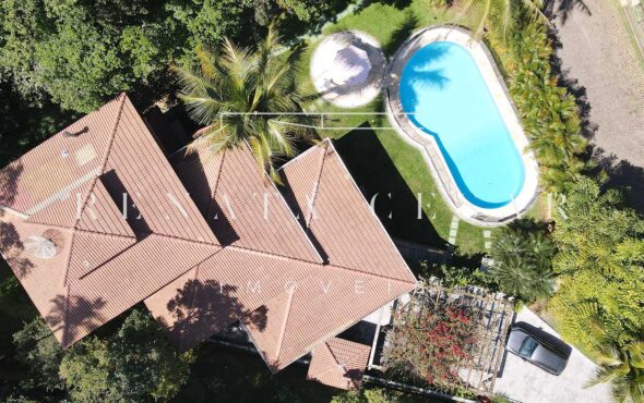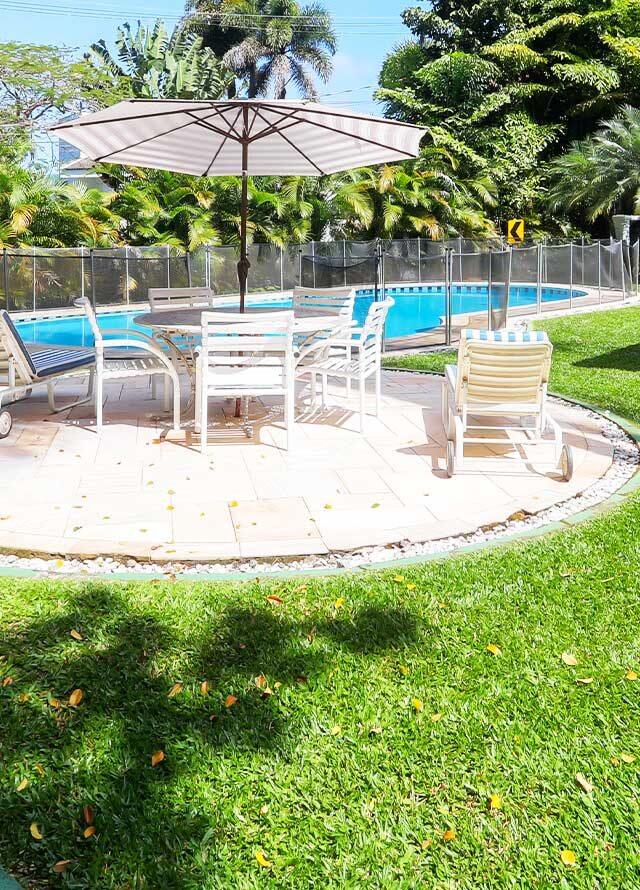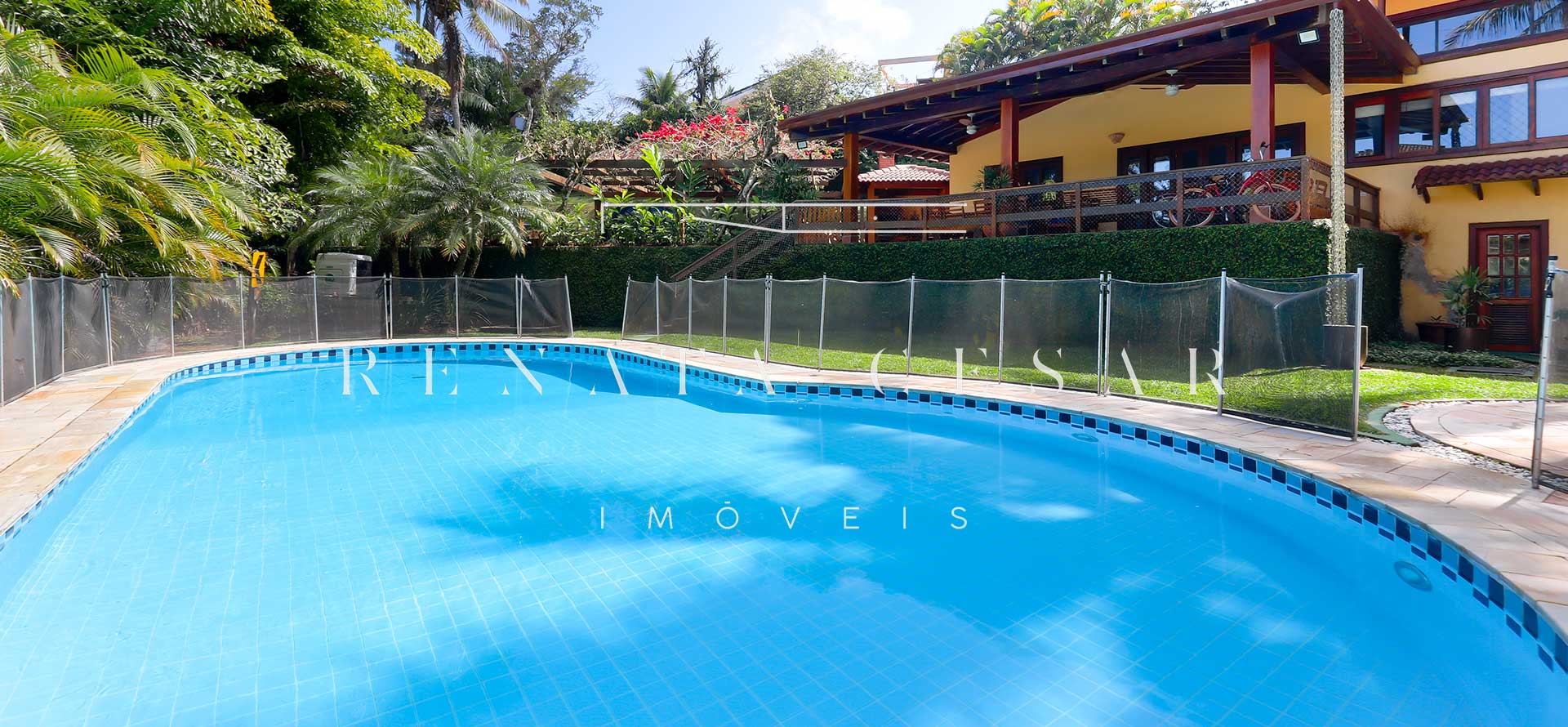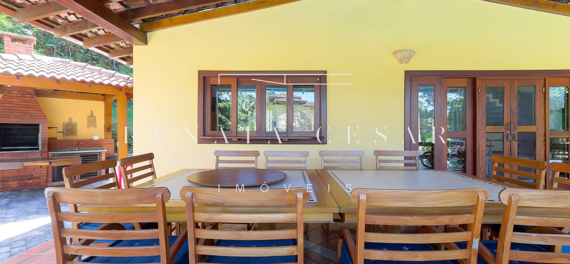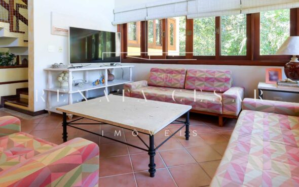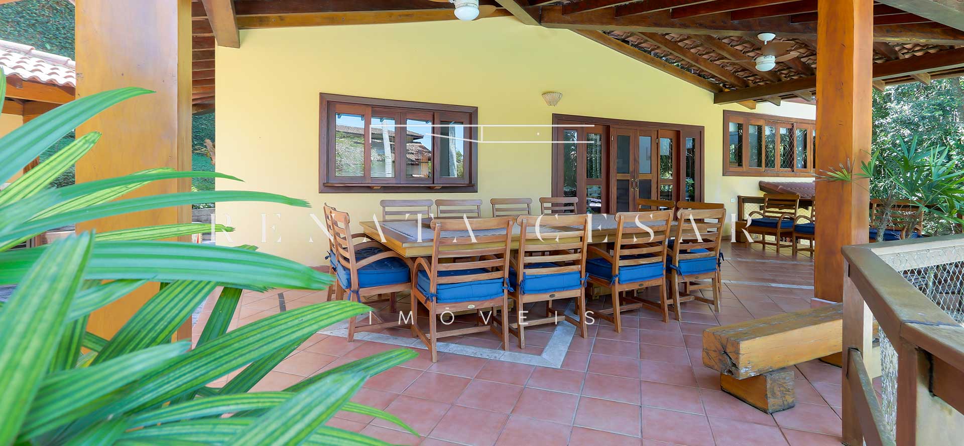 No piso inferior há um bom gramado e uma piscina grande, com excelente exposição solar. Há ainda uma sala multiuso com bar, adega e lavabo, que pode ser transformada em brinquedoteca, academia ou até um home theater. A casa fica a aproximadamente 750 metros da Praia de São Pedro, e 900 metros da Praia de Iporanga.