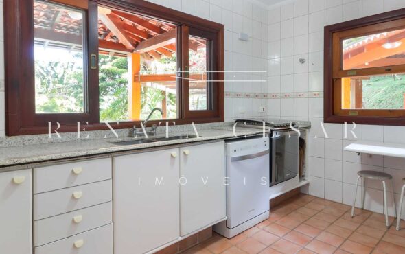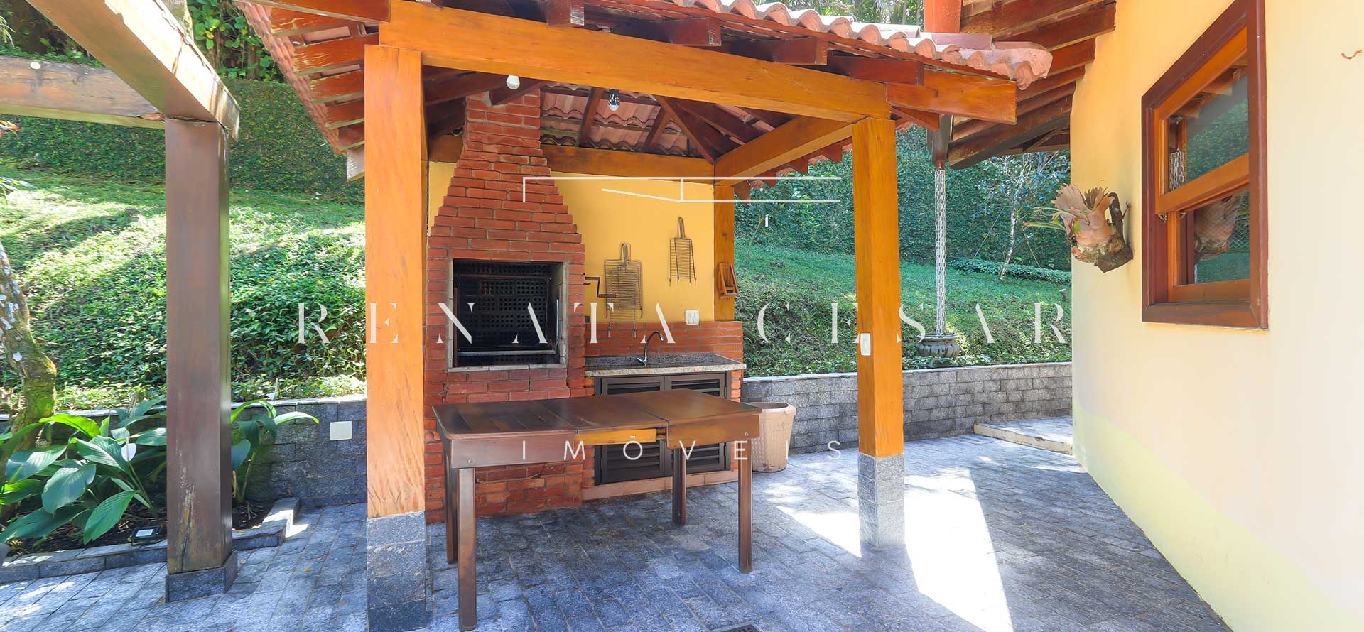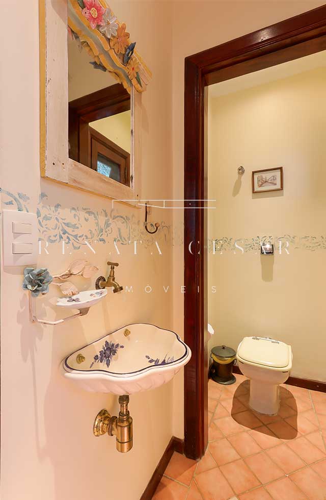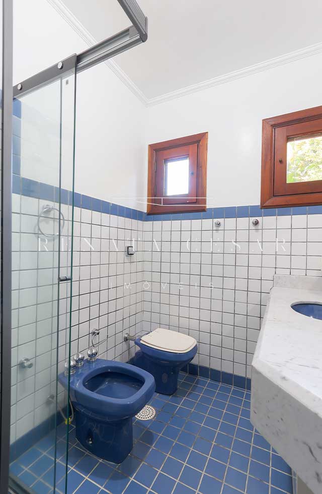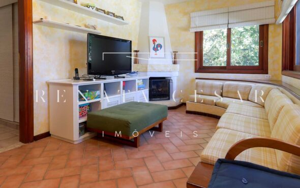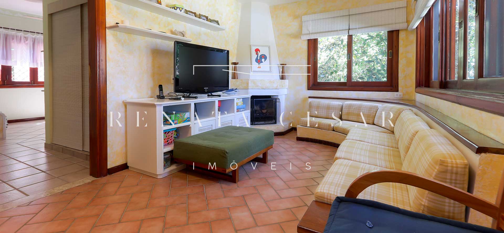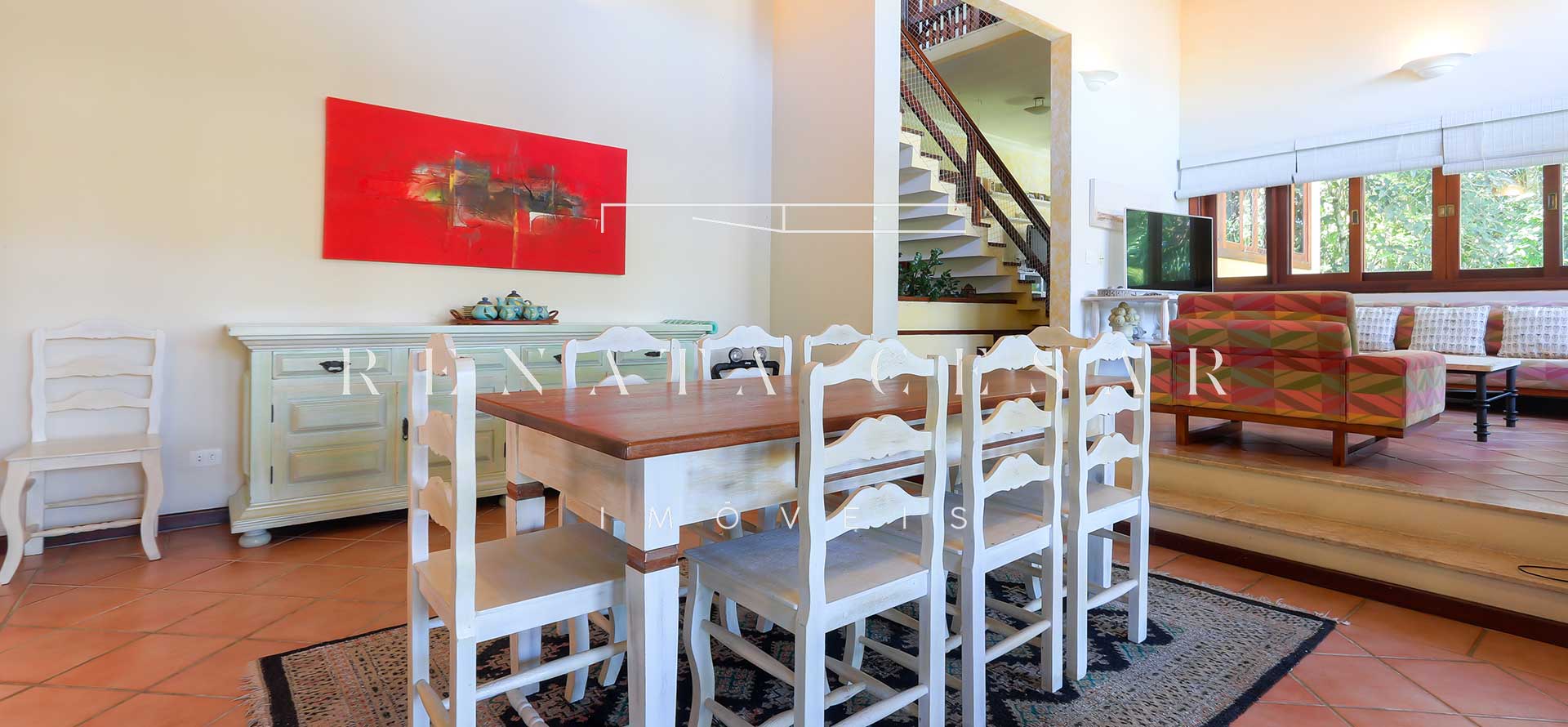 Correr com as crianças no gramado, uma tarde de sol na piscina, ou aquela reunião de amigos na varanda: esta casa oferece vários espaços amplos de lazer e diversão. São três andares, sendo a área social no piso intermediário, com um living de pé-direito bem alto, sala de TV, sala de jantar, lavabo e cozinha completa. Neste mesmo andar fica o terraço com churrasqueira com vista agradável para a piscina e jardim.