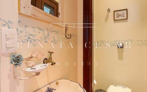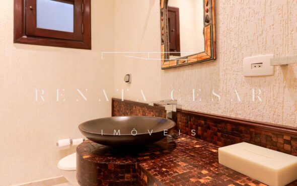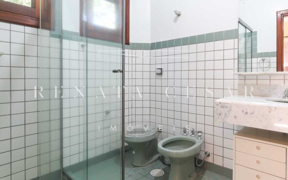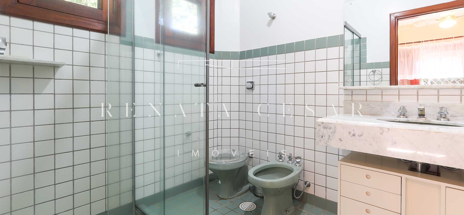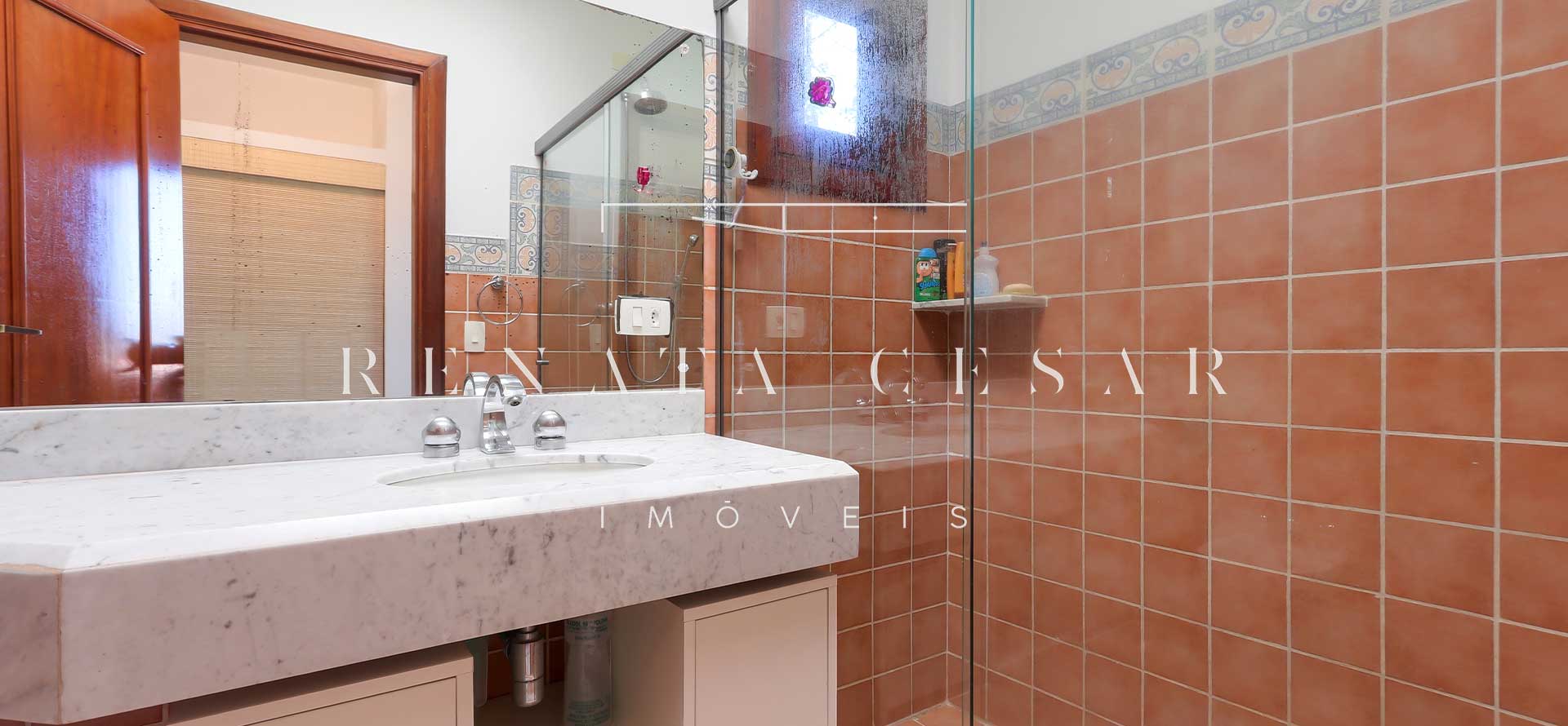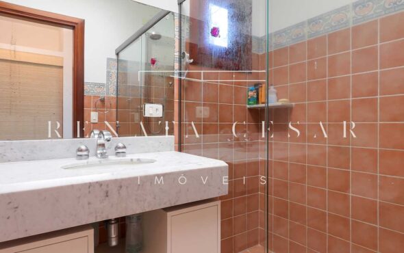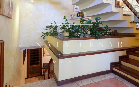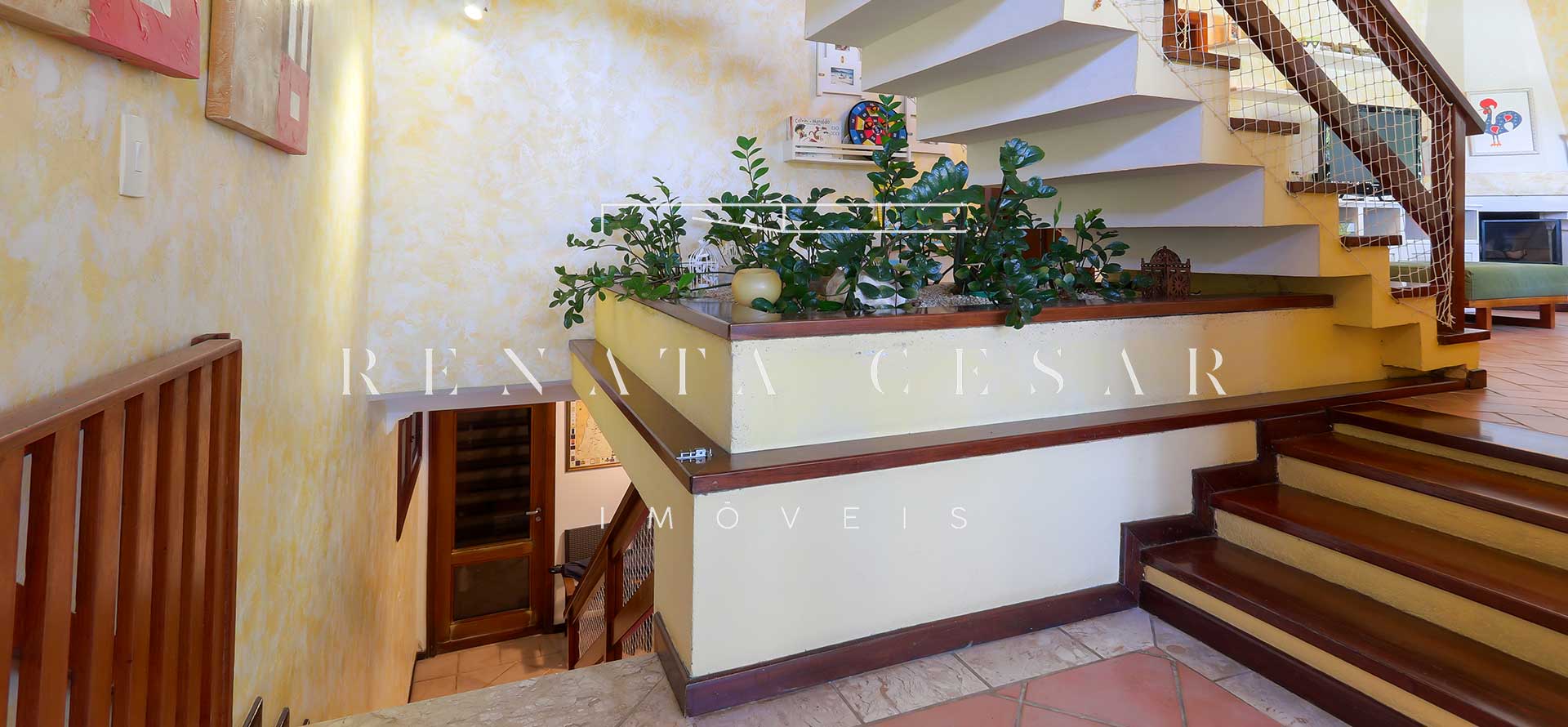 O terreno é um leve aclive e fica numa rua sem saída, com bom recuo em relação aos vizinhos. Ou seja: muita privacidade e tranquilidade para o dia a dia. São 04 suítes, distribuídas nos dois andares superiores da casa.