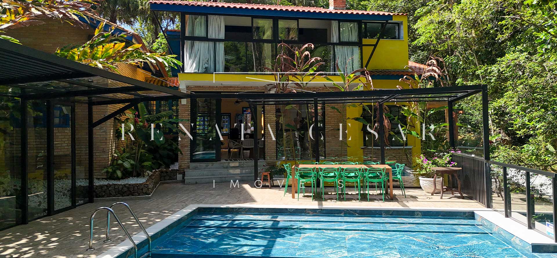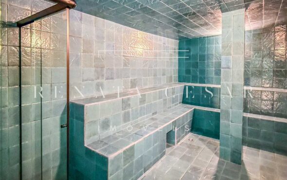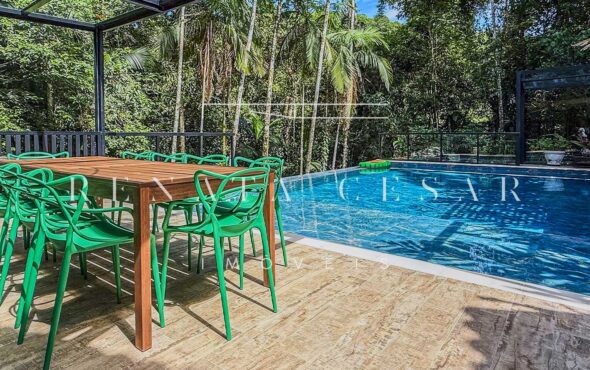 Na área externa, uma grande piscina com prainha abraçada pela mata, onde os dias de sol te esperam. Espreguiçadeiras, sofás e áreas para refeições ficam no entorno, criando diferentes ambientes. Na propriedade há ainda uma ampla sauna úmida e um espaço multiusos com banheiro e ar-condicionado que poderá ser home theater, escritório ou uma sala de jogos.
