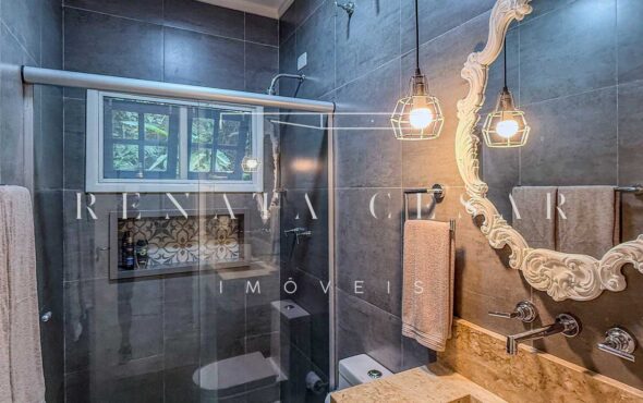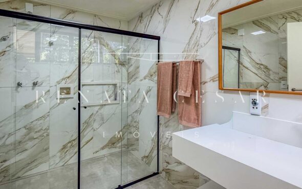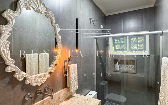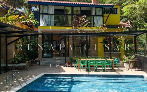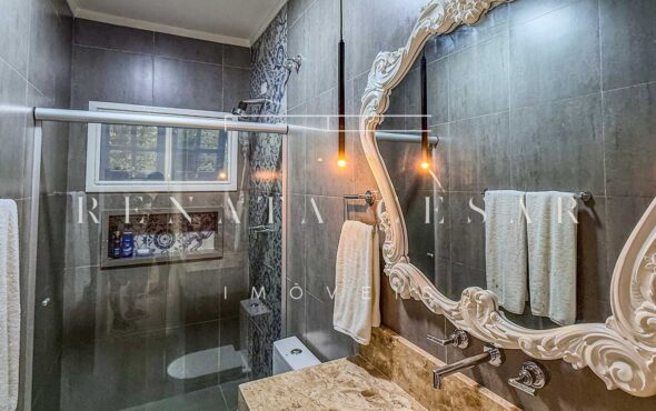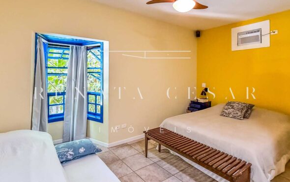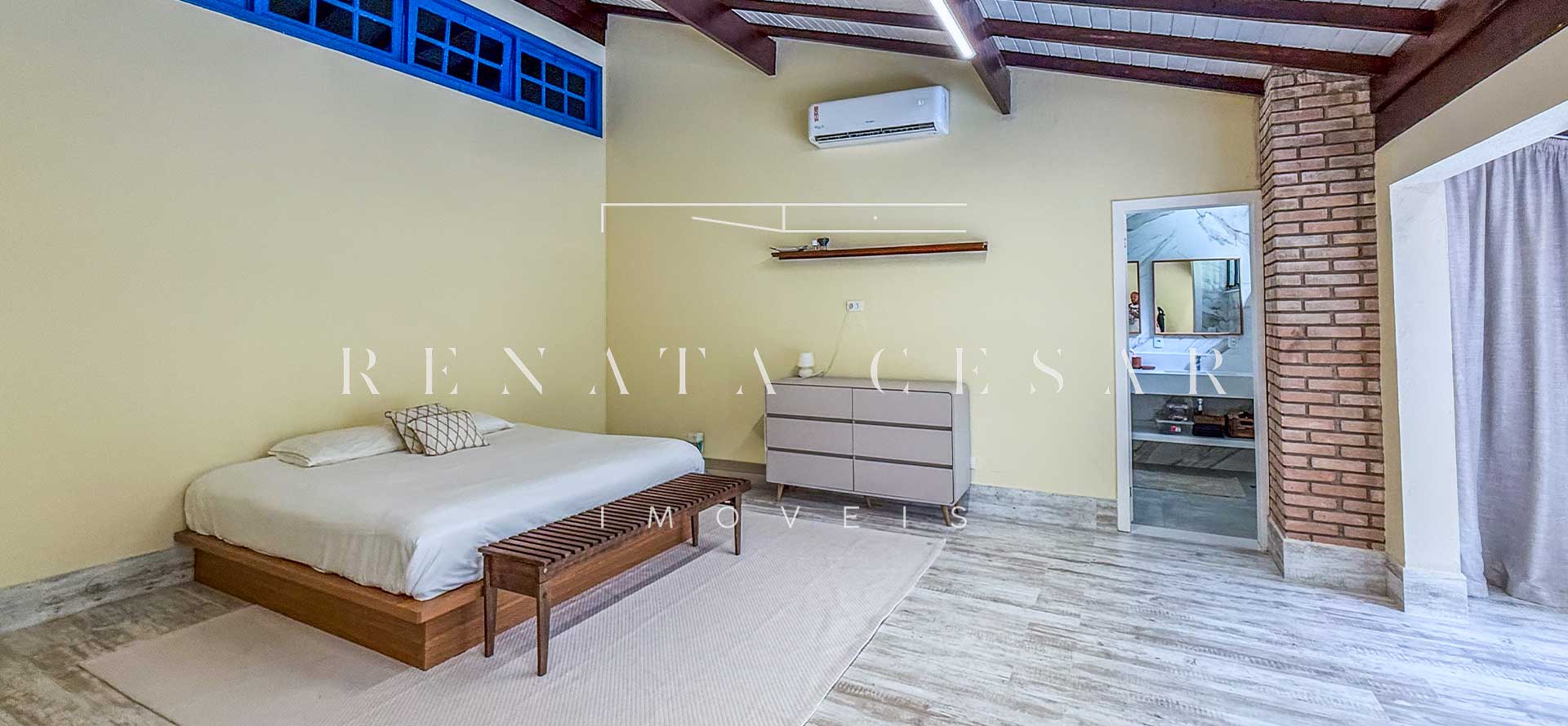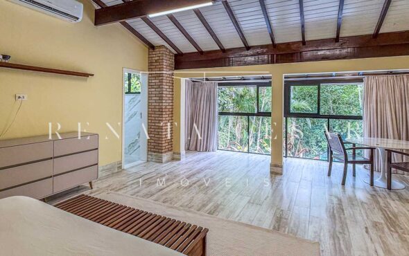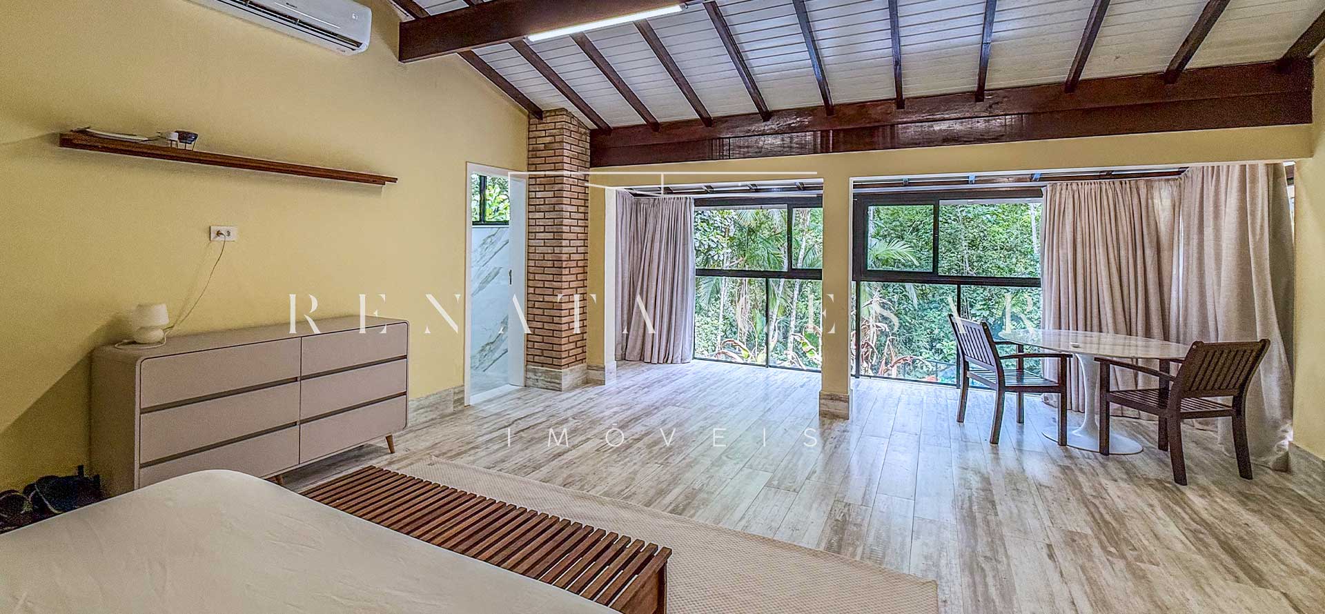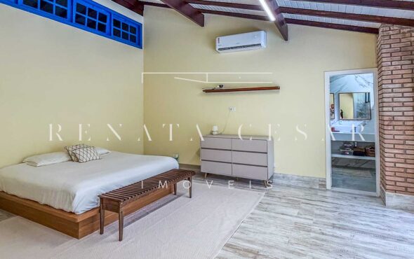 A casa possui 05 suítes completas e muito bem conservadas, todas com ar-condicionado. A principal é enorme, com pé-direito alto e uma vista agradável para a área externa com piscina.