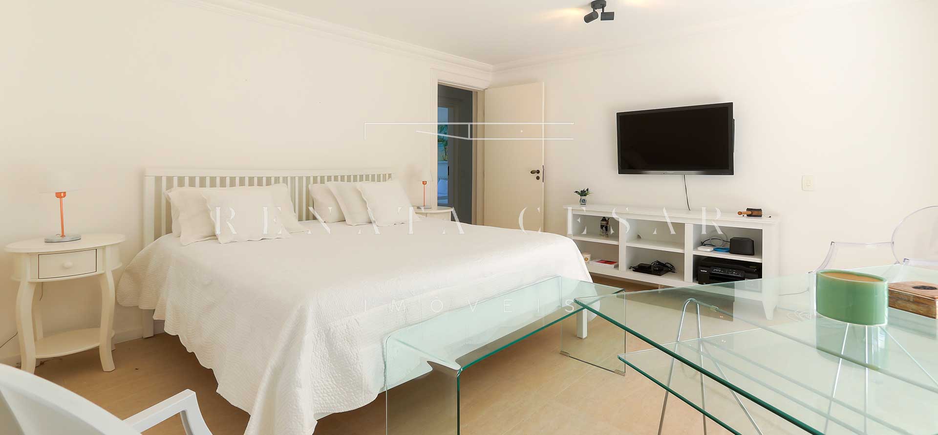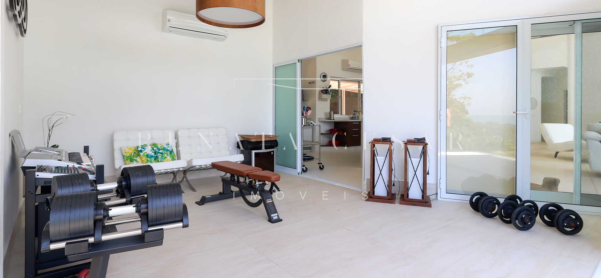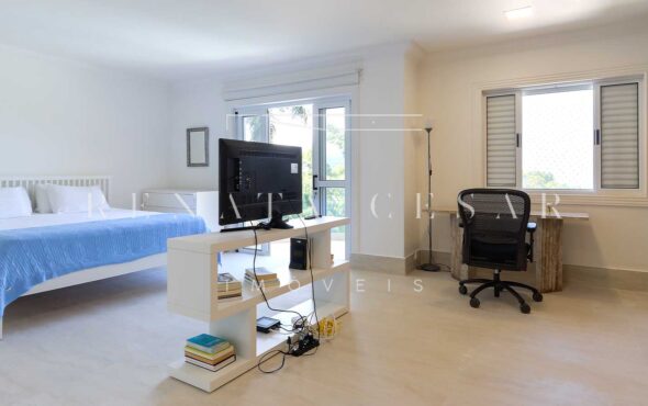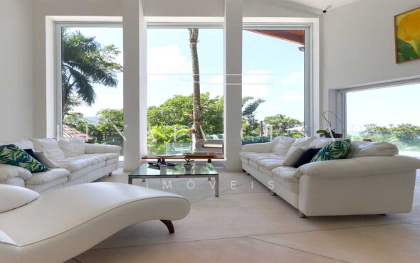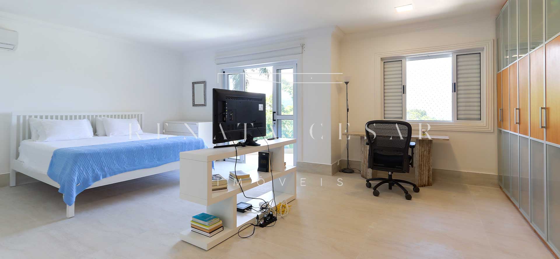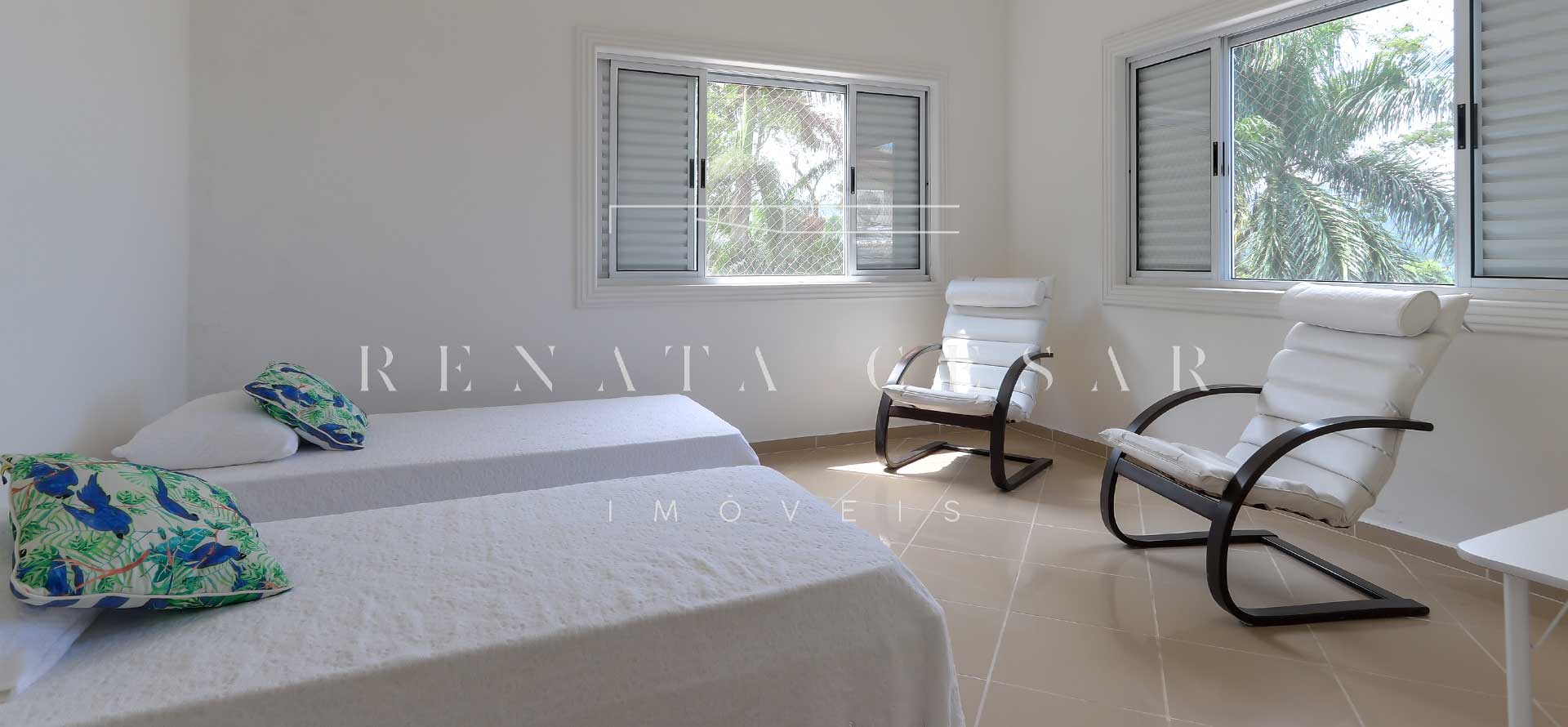 A casa conta com 06 dormitórios, sendo 05 suítes, quase todas no piso térreo, no parte lateral do piso social. São quartos aconchegantes, clean, e três deles com uma vista gostosa para a área da piscina. Subindo mais um piso, encontra-se a suíte principal, que tem armários planejados, um canto para escritório e um terraço com vista-mar. Há ainda um quarto mais privativo no piso superior da casa, também com uma vista maravilhosa para o oceano.