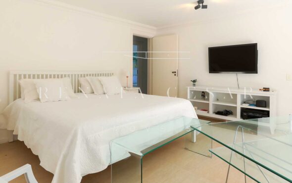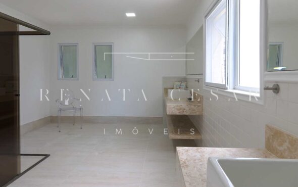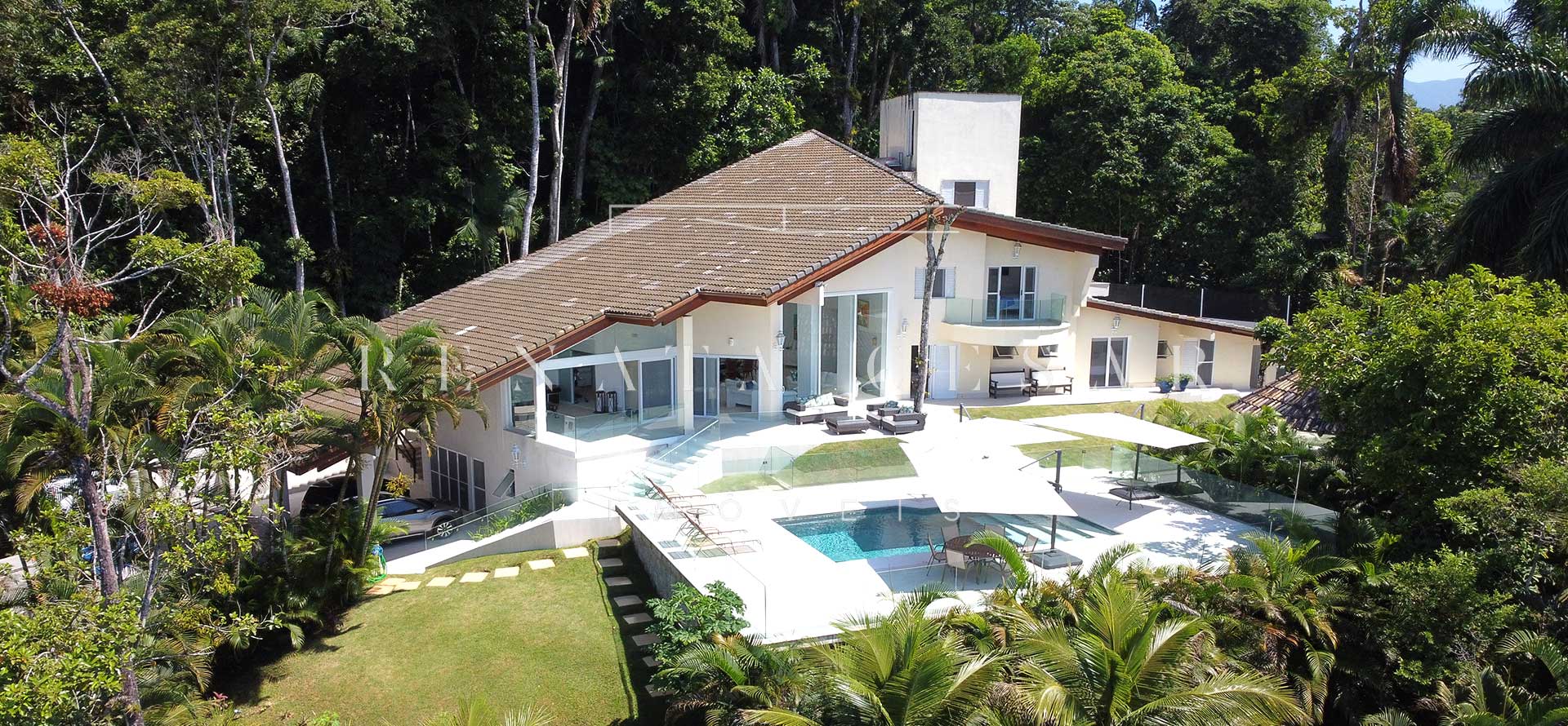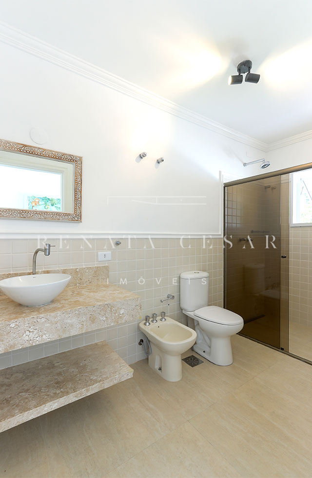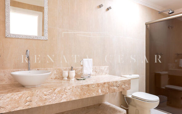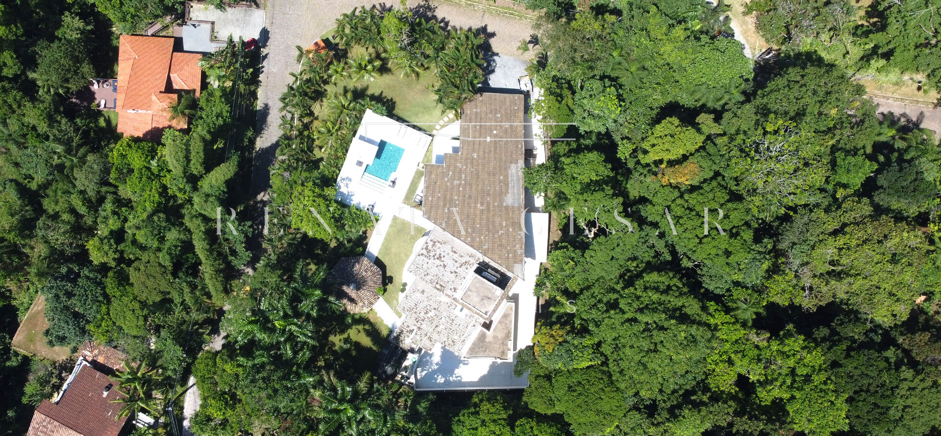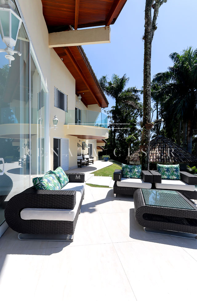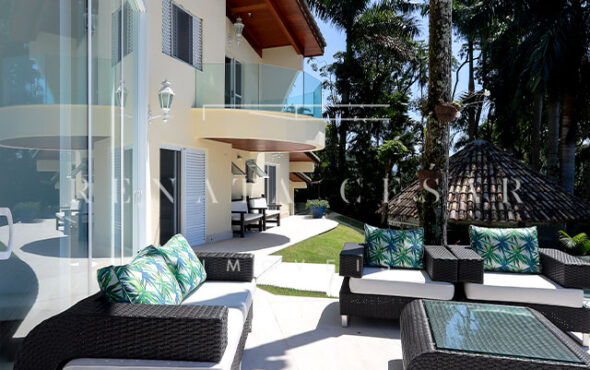 A casa conta com 06 dormitórios, sendo 05 suítes, quase todas no piso térreo, no parte lateral do piso social. São quartos aconchegantes, clean, e três deles com uma vista gostosa para a área da piscina. Subindo mais um piso, encontra-se a suíte principal, que tem armários planejados, um canto para escritório e um terraço com vista-mar. Há ainda um quarto mais privativo no piso superior da casa, também com uma vista maravilhosa para o oceano.