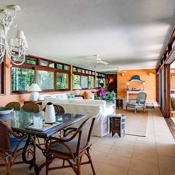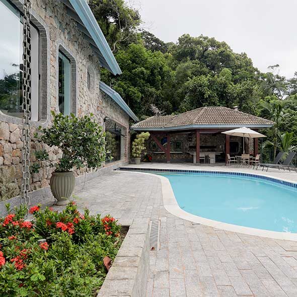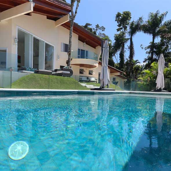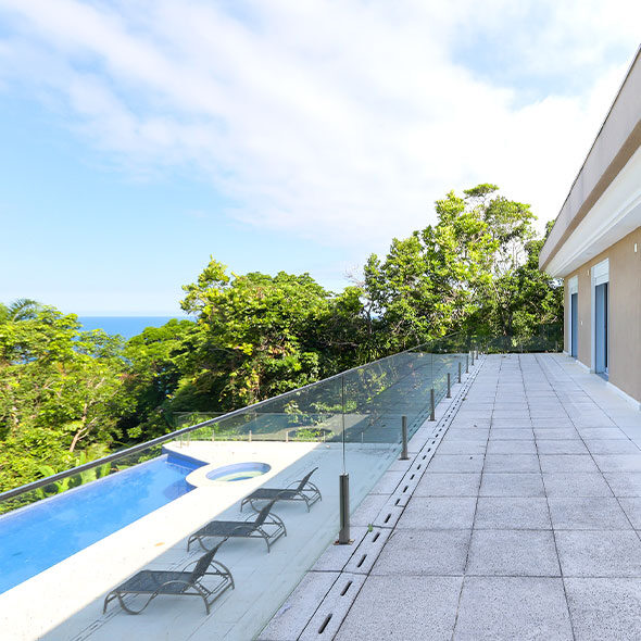 Relaxar no jacuzzi, juntar a família para um almoço no terraço, mergulhar na piscina, ou passar aqueles minutinhos sagrados na sauna? Aqui, todas as opções são possíveis. A área externa da casa é incrível, ensolarada, e integra um espaço gourmet com churrasqueira à grande piscina com uma bela cascata em pedra. O terreno plano é ótimo para crianças. Na propriedade, há ainda casa para caseiros e garagem para 03 carros cobertos e até 08 carros descobertos. A praia está a menos de 50 metros da residência.