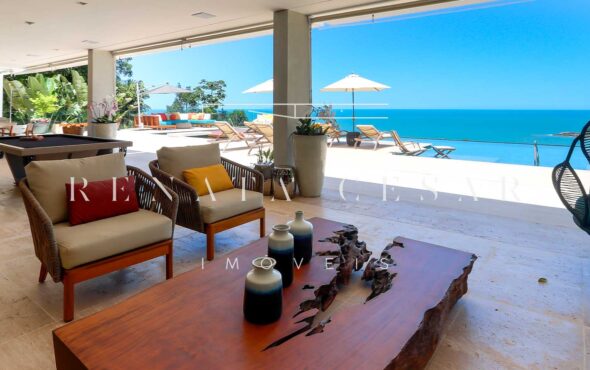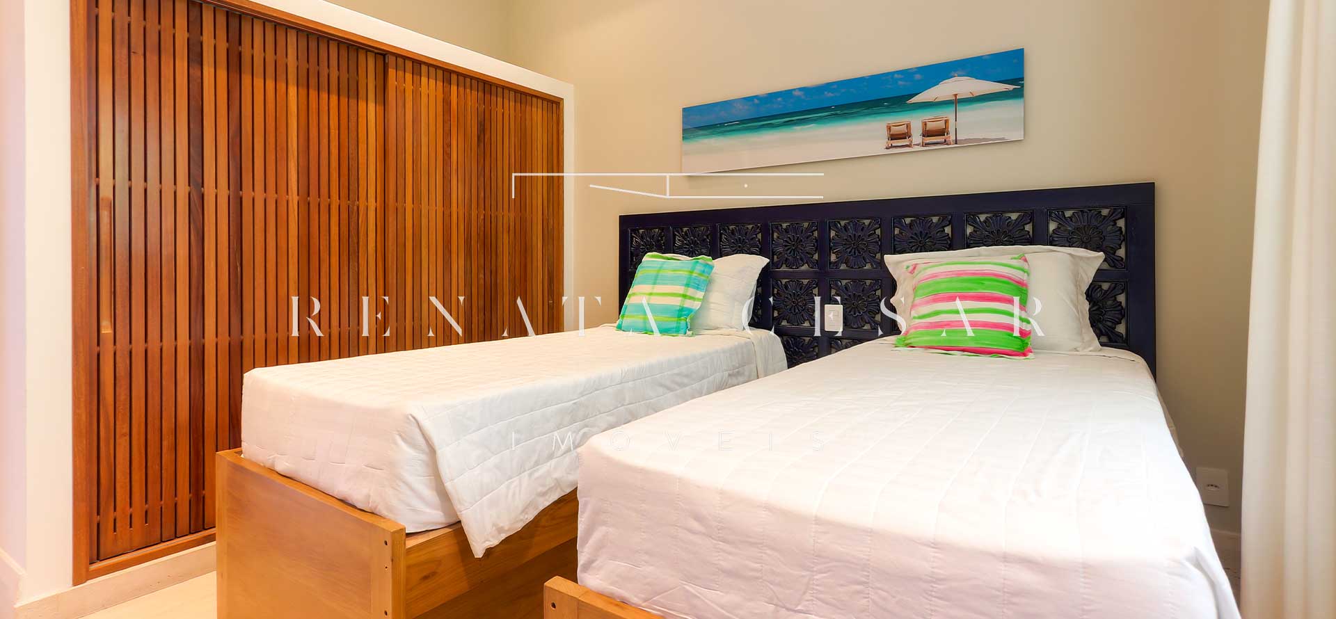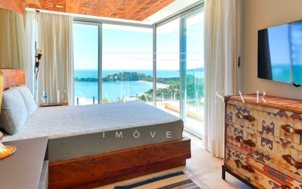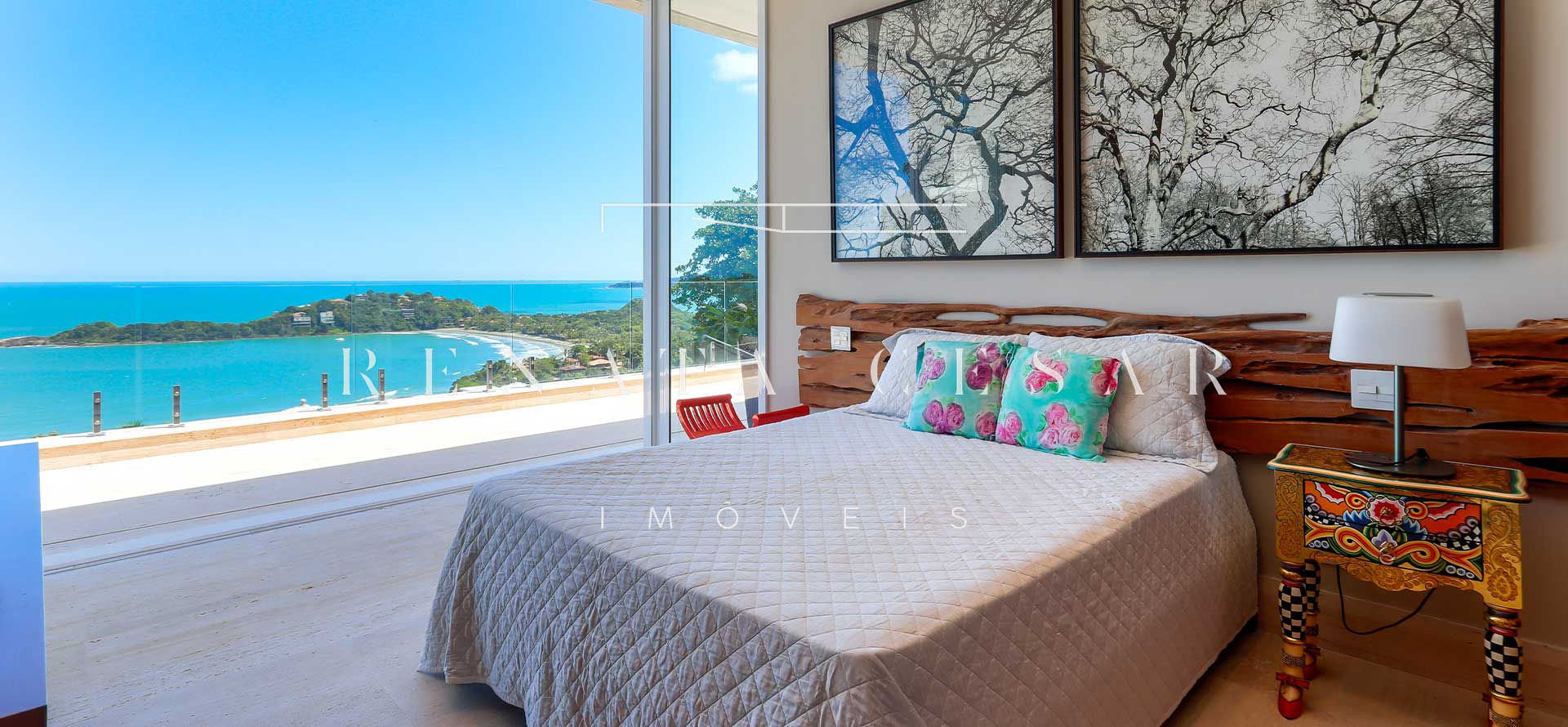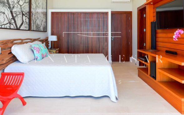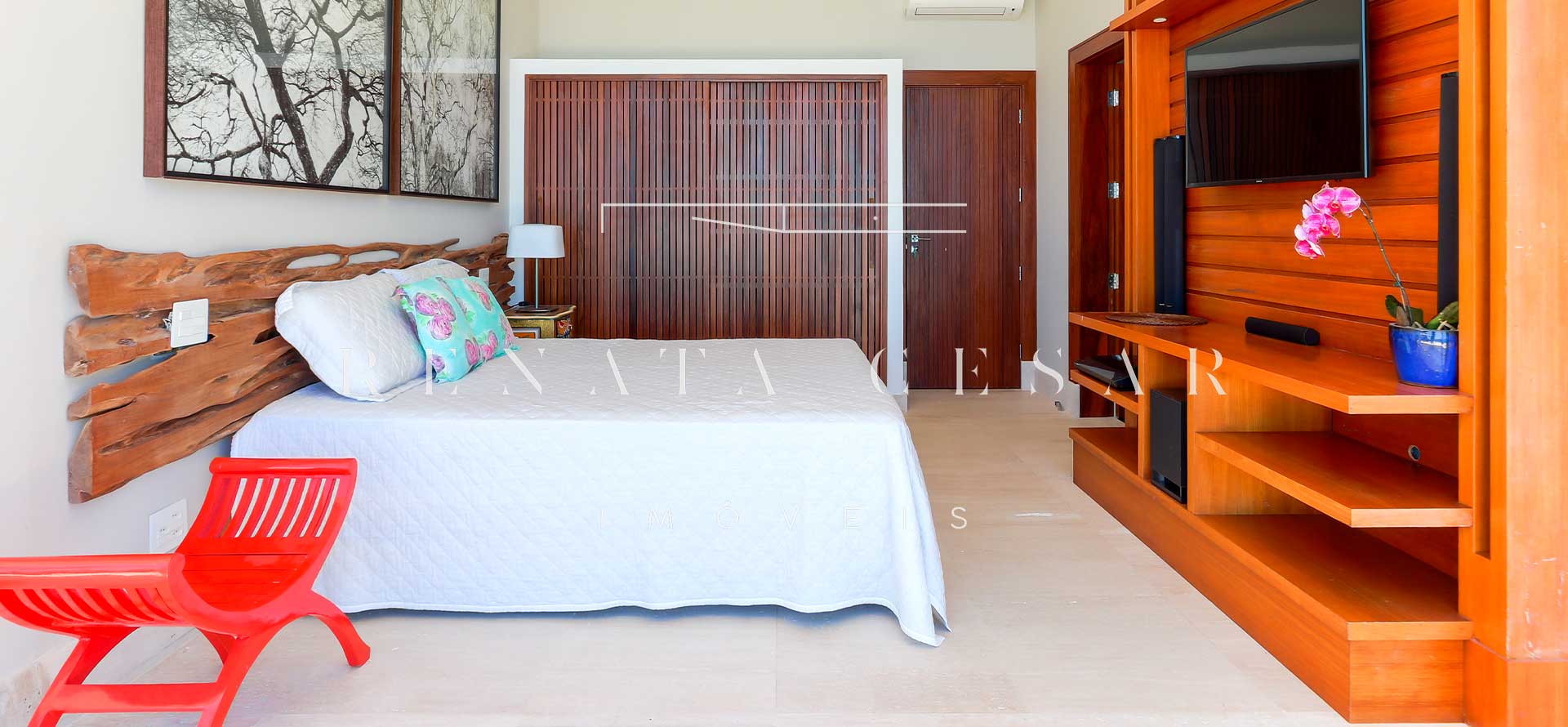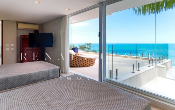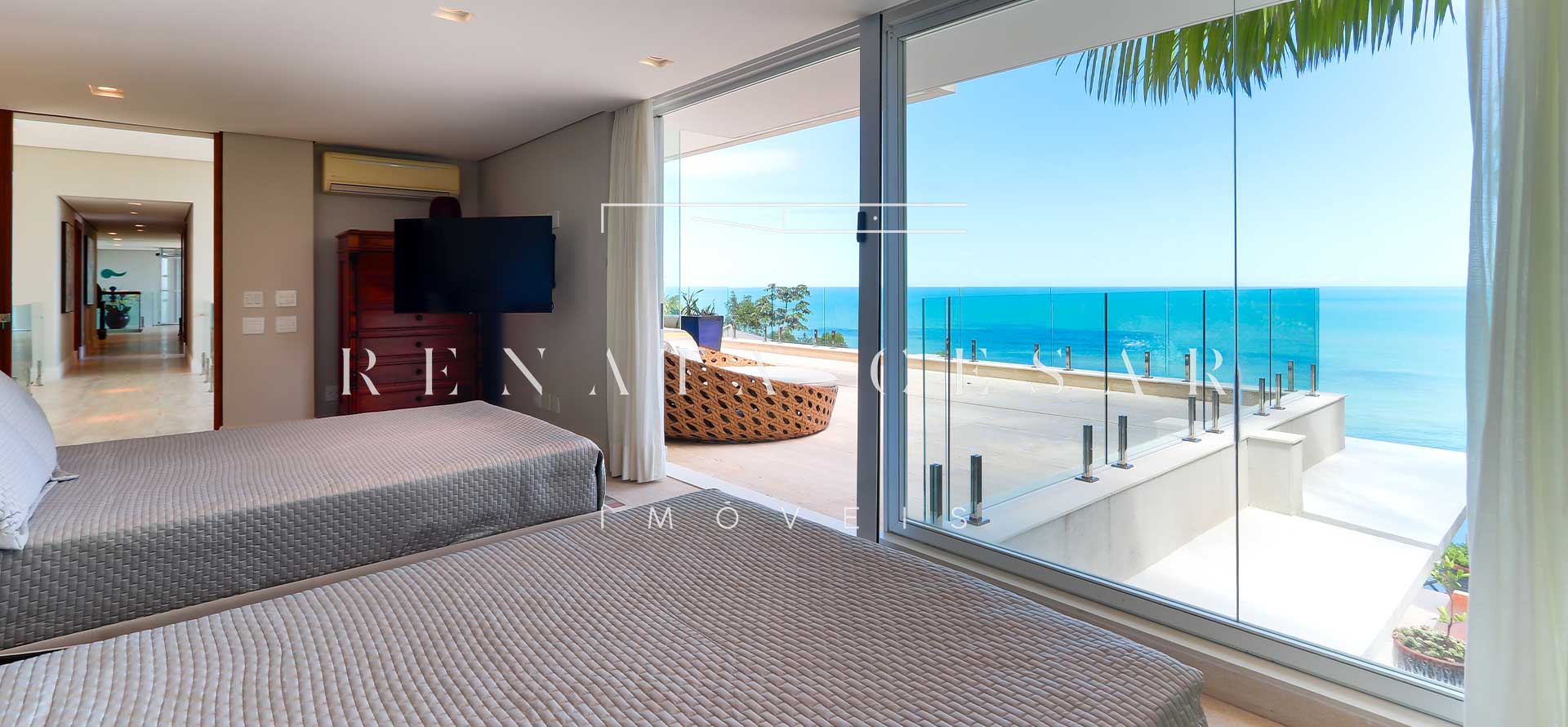 A casa possui 06 suítes completas, climatizadas e com mobiliário e acabamentos de alto padrão. Três delas têm vista para a mata, e três são viradas para o mar, com uma vista impressionante do terraço. Na suíte principal, camas enormes, banheiro duplo e uma atmosfera contagiante de bem-estar.