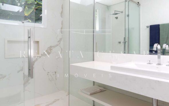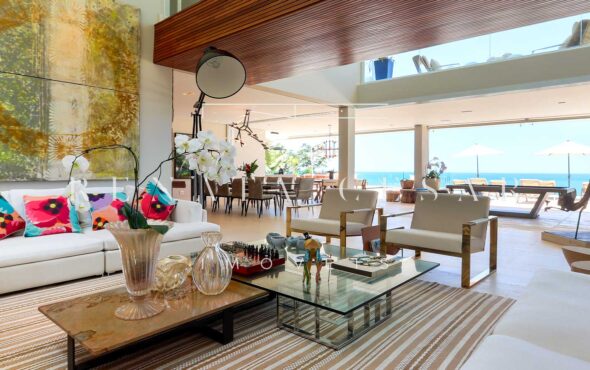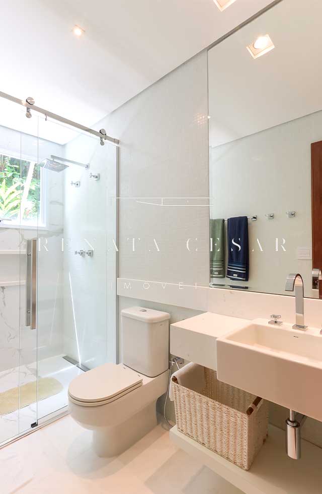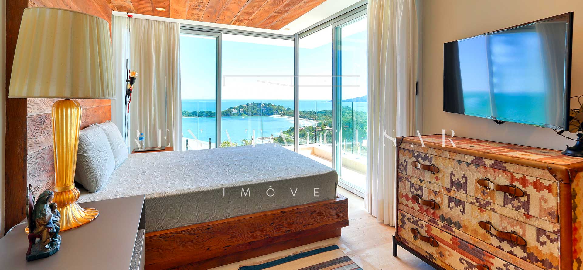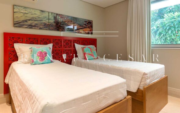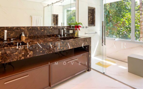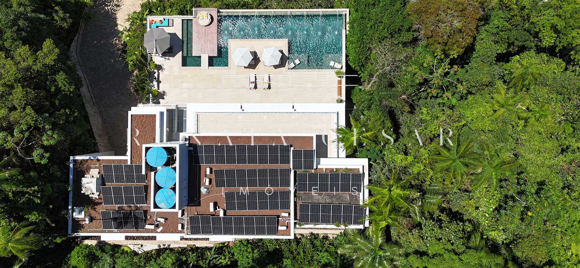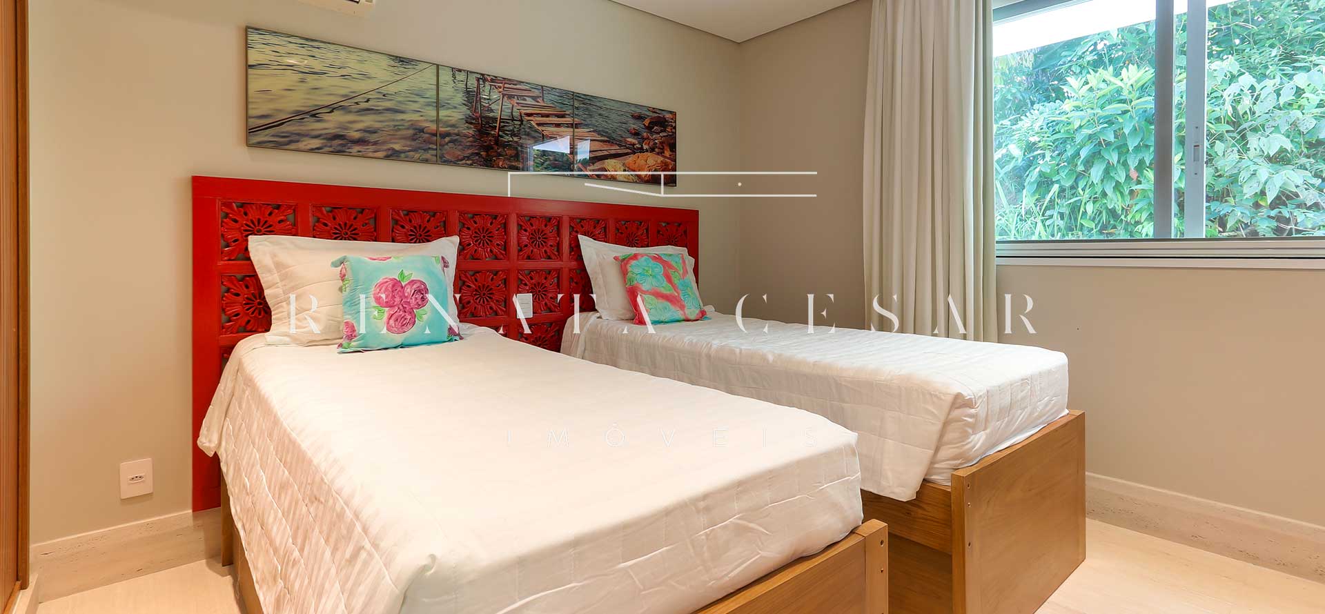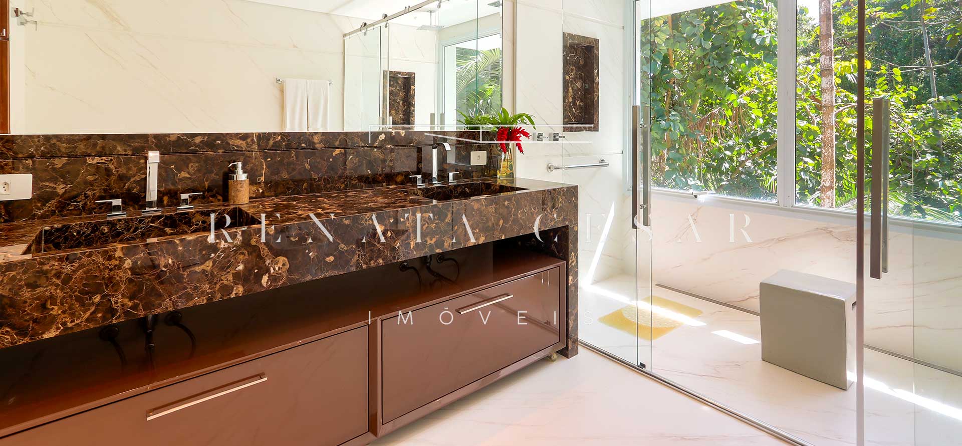 A casa possui 06 suítes completas, climatizadas e com mobiliário e acabamentos de alto padrão. Três delas têm vista para a mata, e três são viradas para o mar, com uma vista impressionante do terraço. Na suíte principal, camas enormes, banheiro duplo e uma atmosfera contagiante de bem-estar.