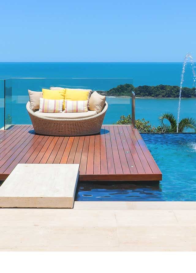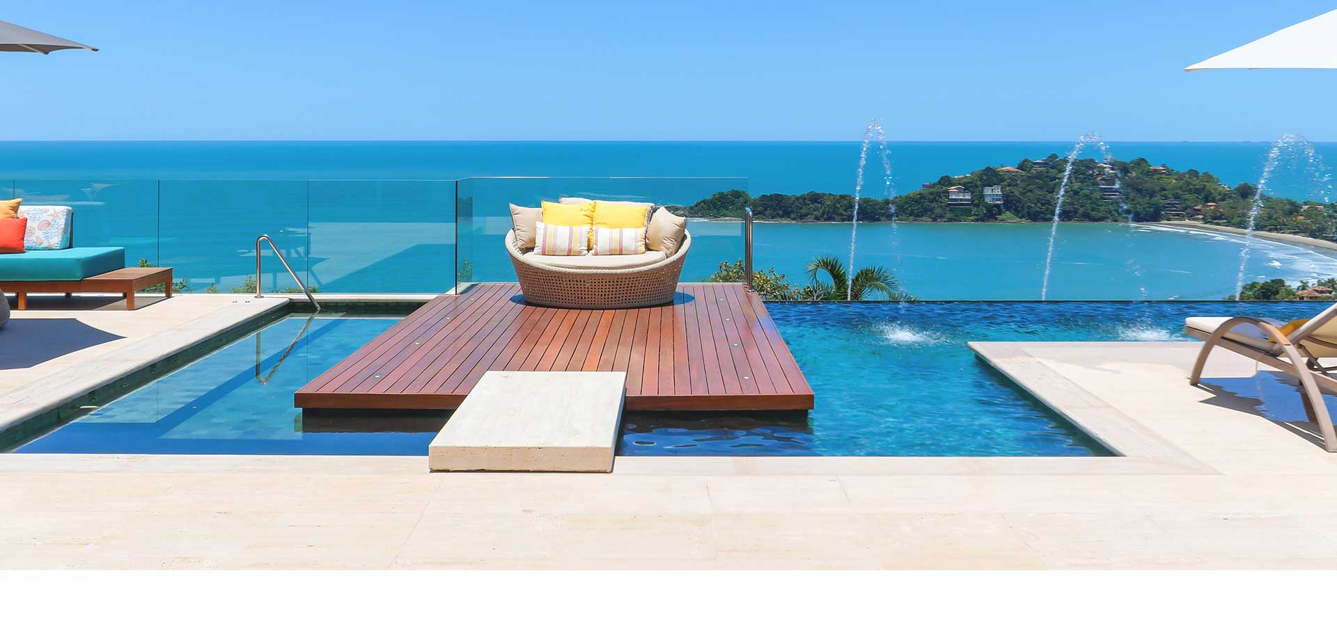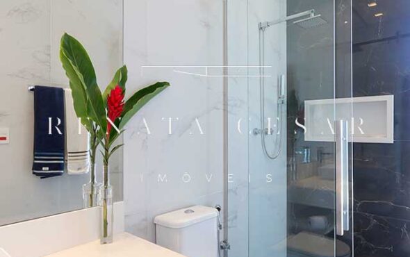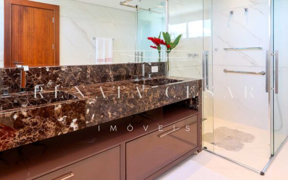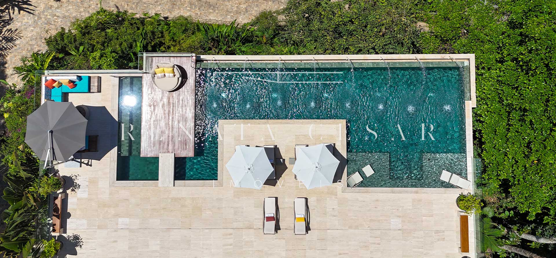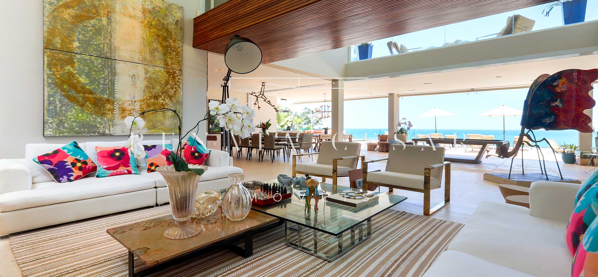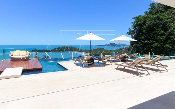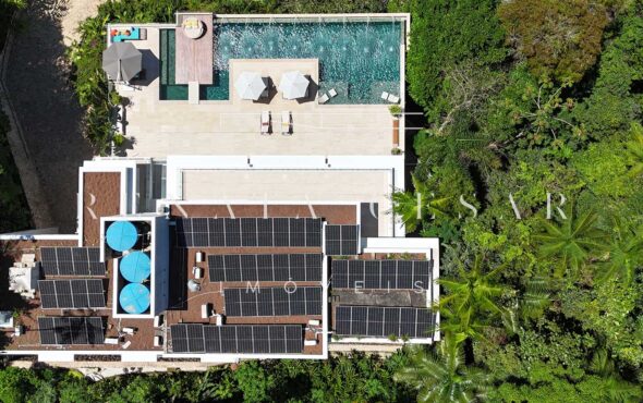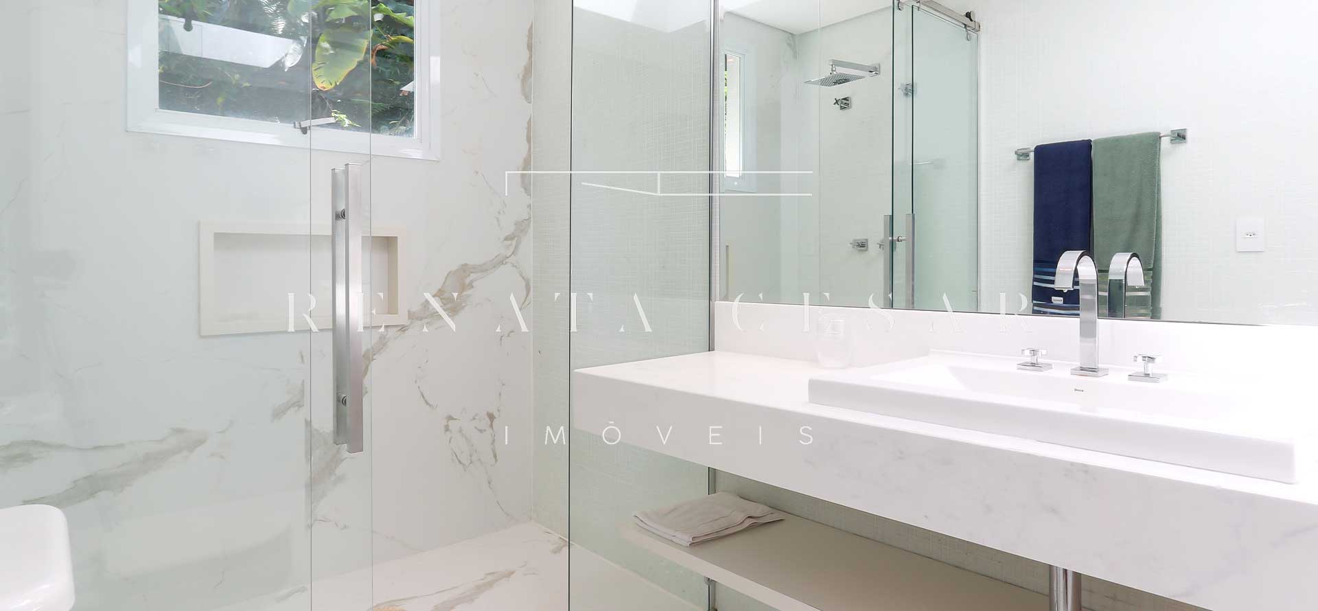 A casa possui 06 suítes completas, climatizadas e com mobiliário e acabamentos de alto padrão. Três delas têm vista para a mata, e três são viradas para o mar, com uma vista impressionante do terraço. Na suíte principal, camas enormes, banheiro duplo e uma atmosfera contagiante de bem-estar.