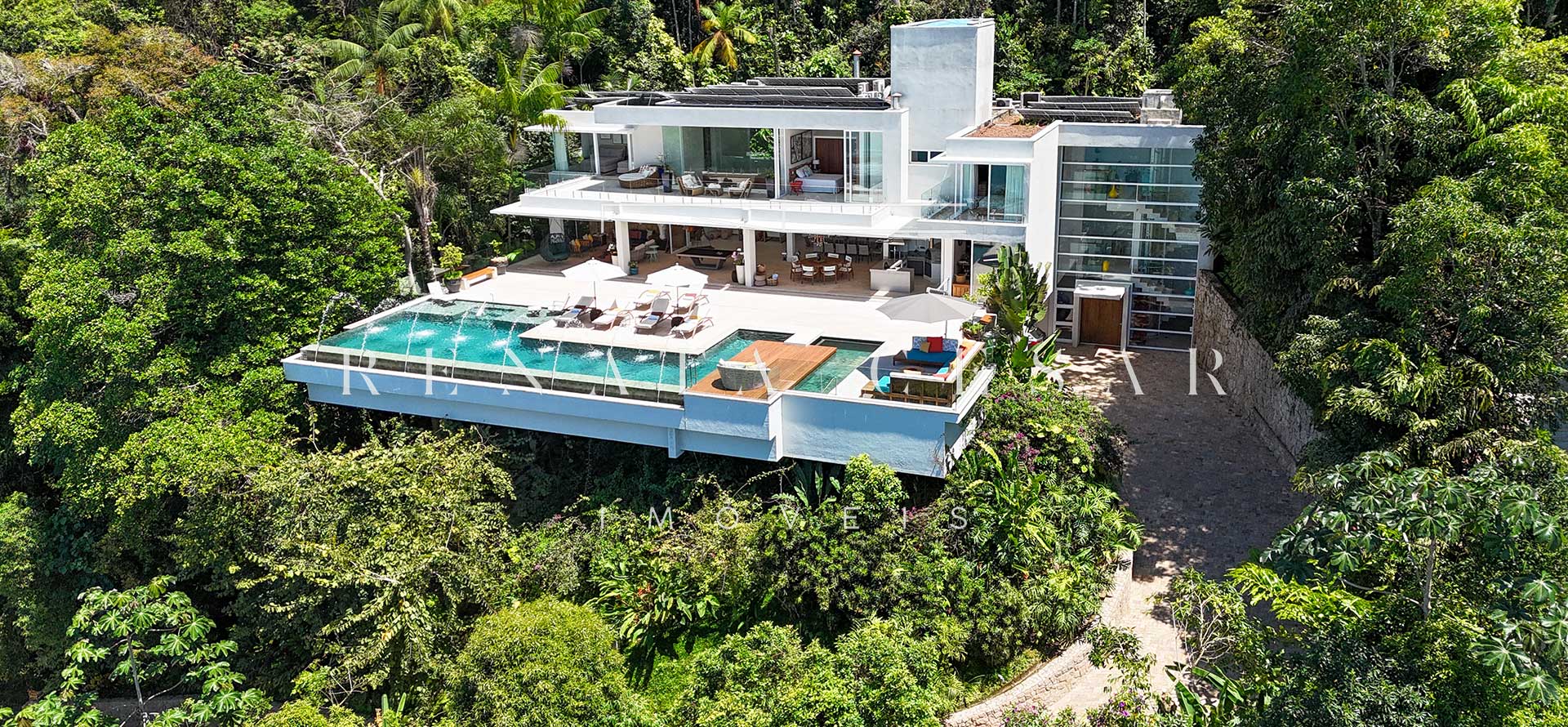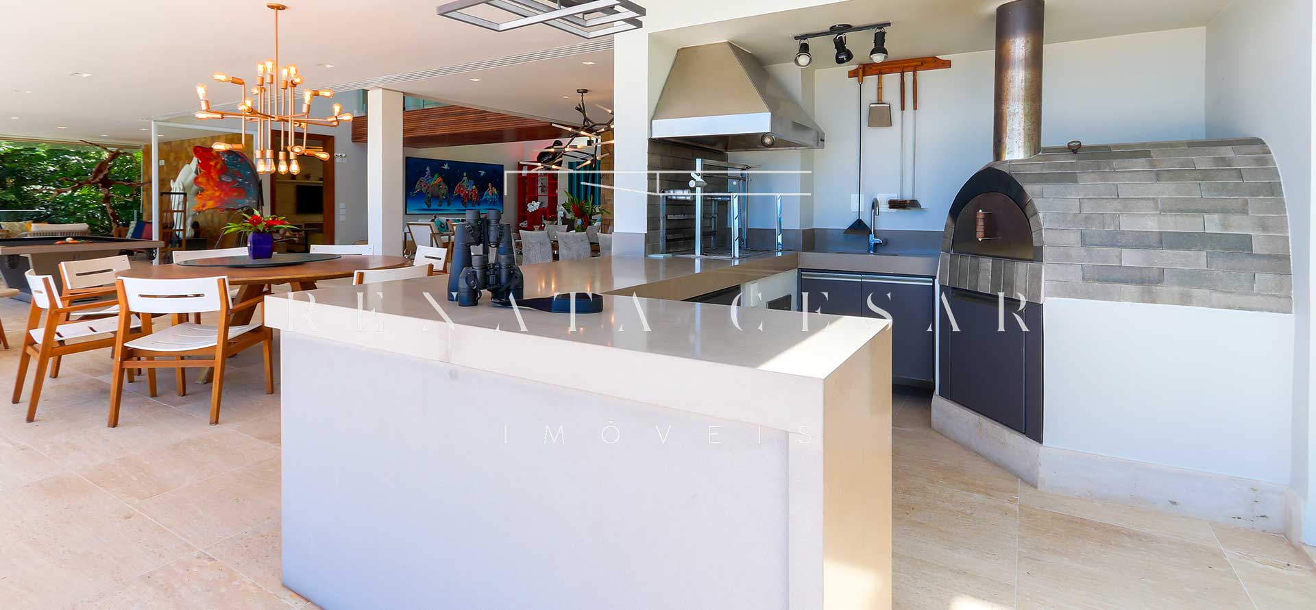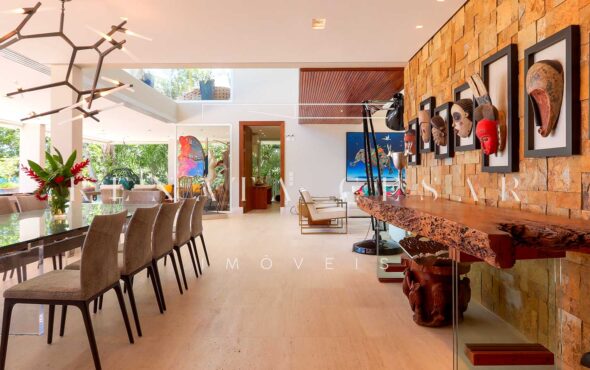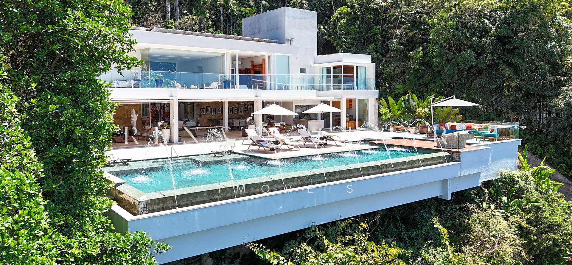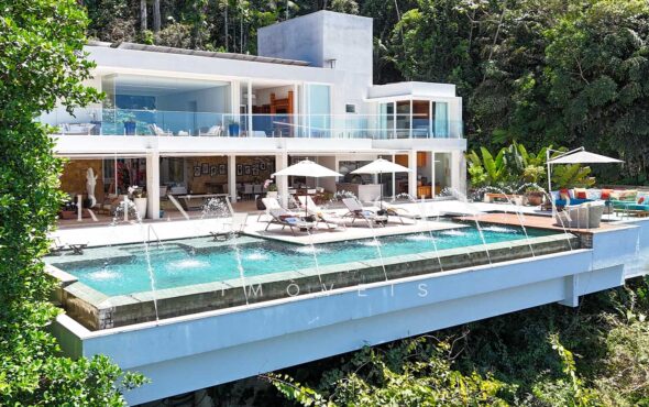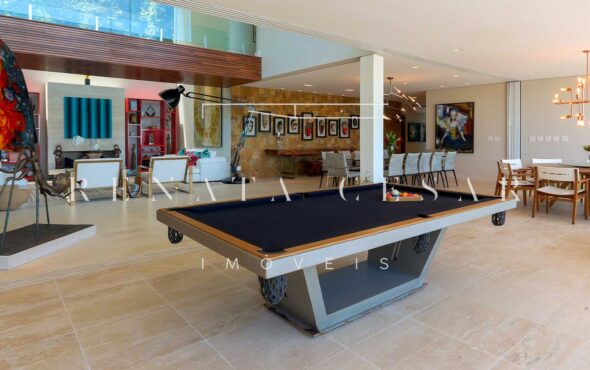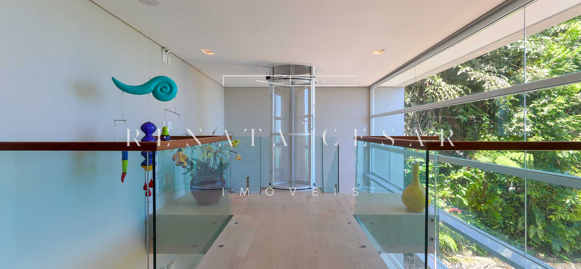 Seja pela mata, pelo mar, pelo céu, ou pelo design: tudo nesta casa comunica sofisticação e conforto. Há um living integrado com pé-direito duplo, sala de estar e jantar, mesa de bilhar e capricho em todos os detalhes. O home theater é enorme, assim como a cozinha gourmet que tem vista para a área externa. Há ainda uma cozinha secundária com despensa. São 3 andares com acesso via elevador panorâmico.