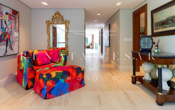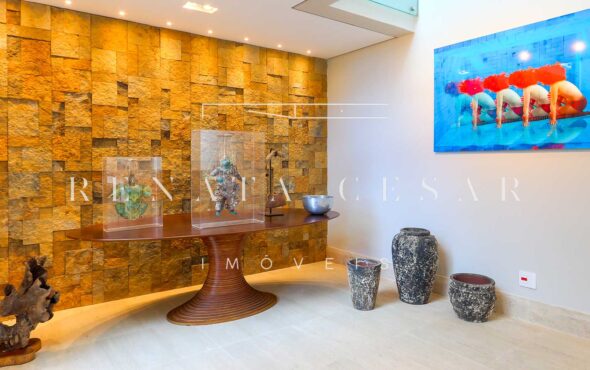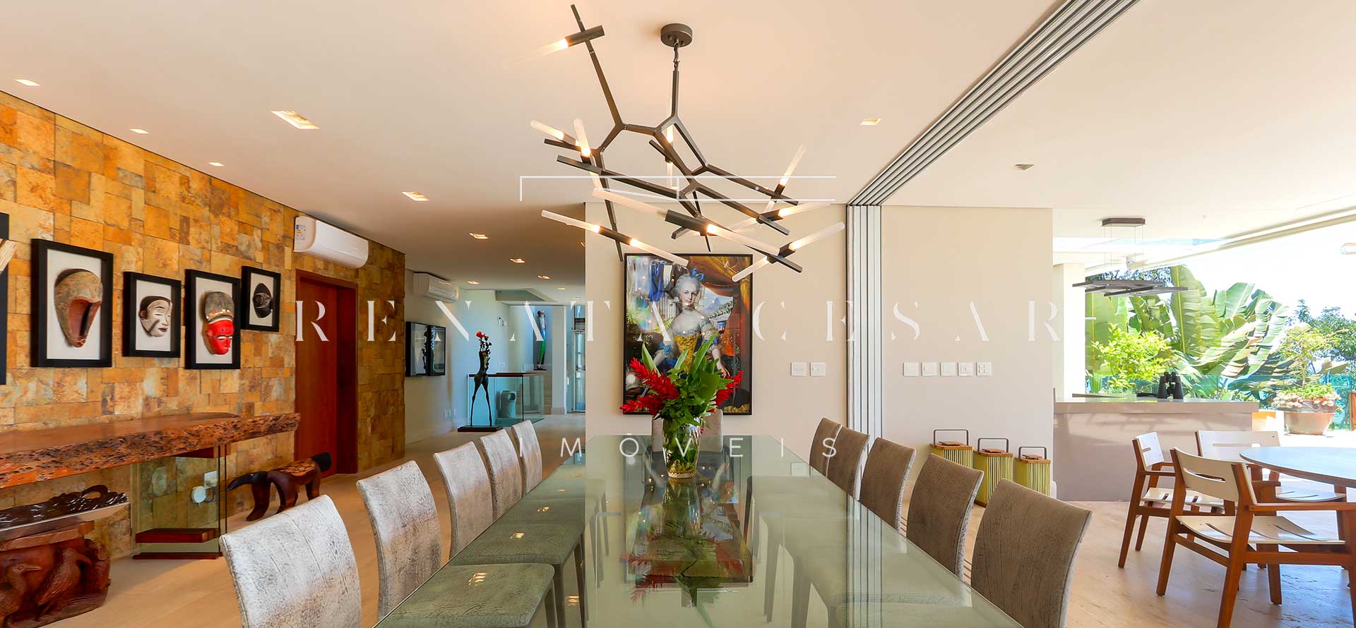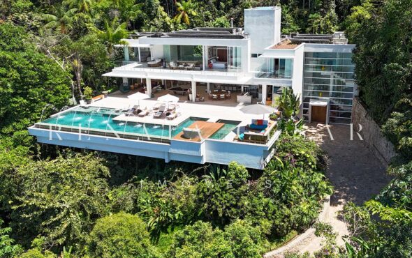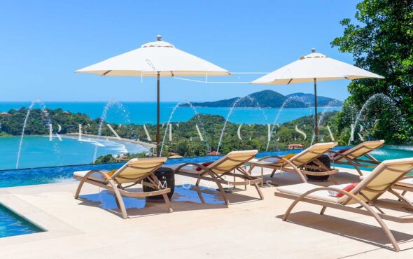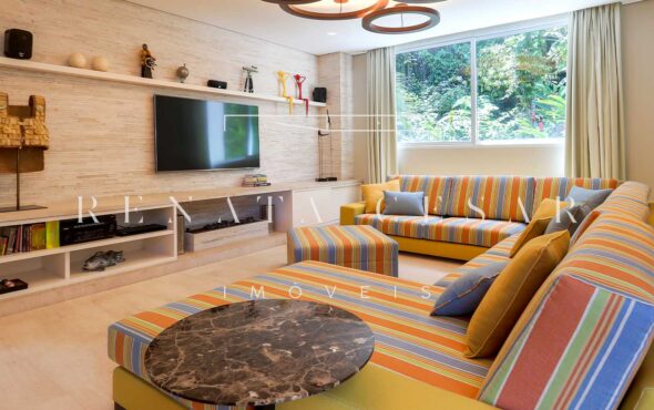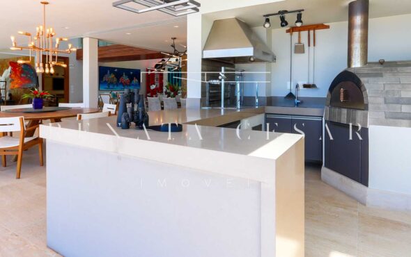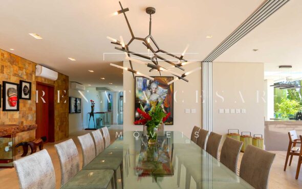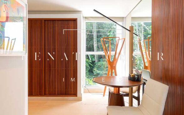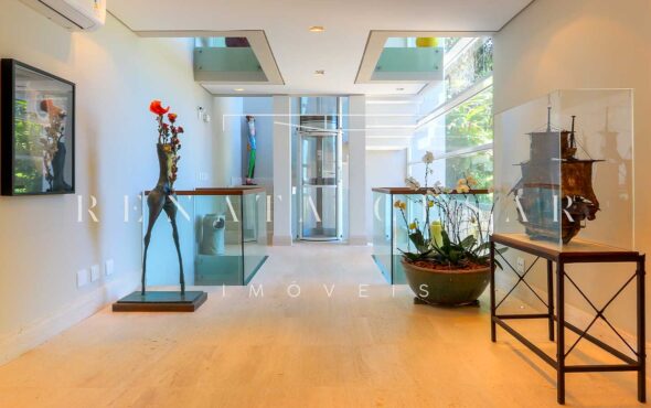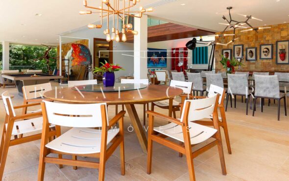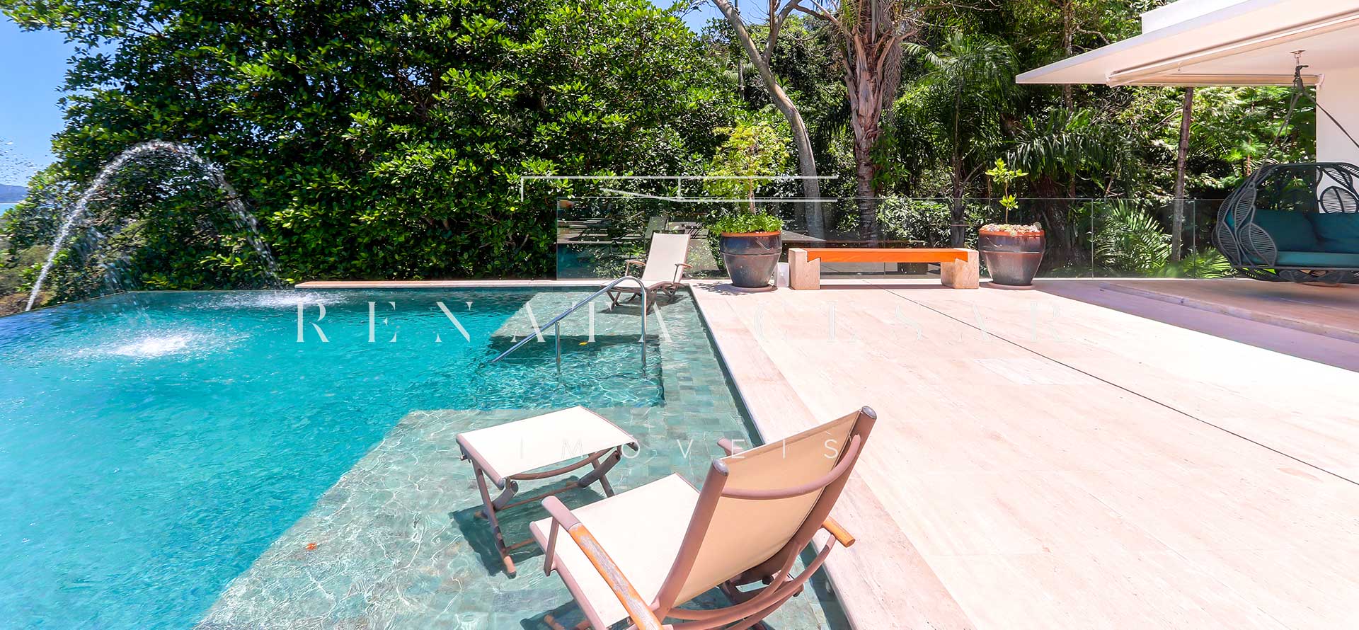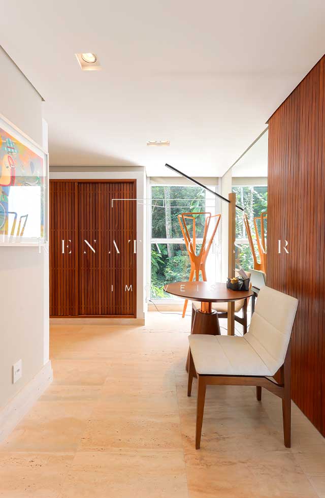 Seja pela mata, pelo mar, pelo céu, ou pelo design: tudo nesta casa comunica sofisticação e conforto. Há um living integrado com pé-direito duplo, sala de estar e jantar, mesa de bilhar e capricho em todos os detalhes. O home theater é enorme, assim como a cozinha gourmet que tem vista para a área externa. Há ainda uma cozinha secundária com despensa. São 3 andares com acesso via elevador panorâmico.