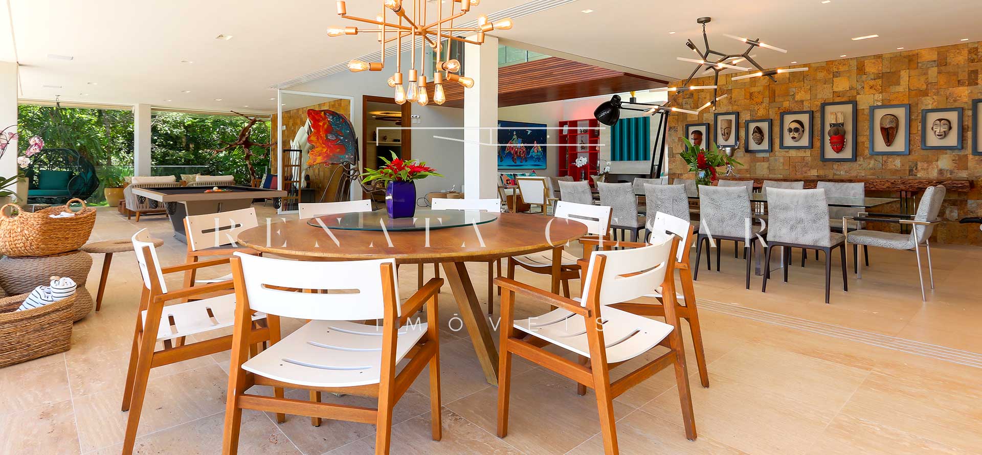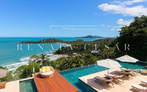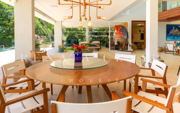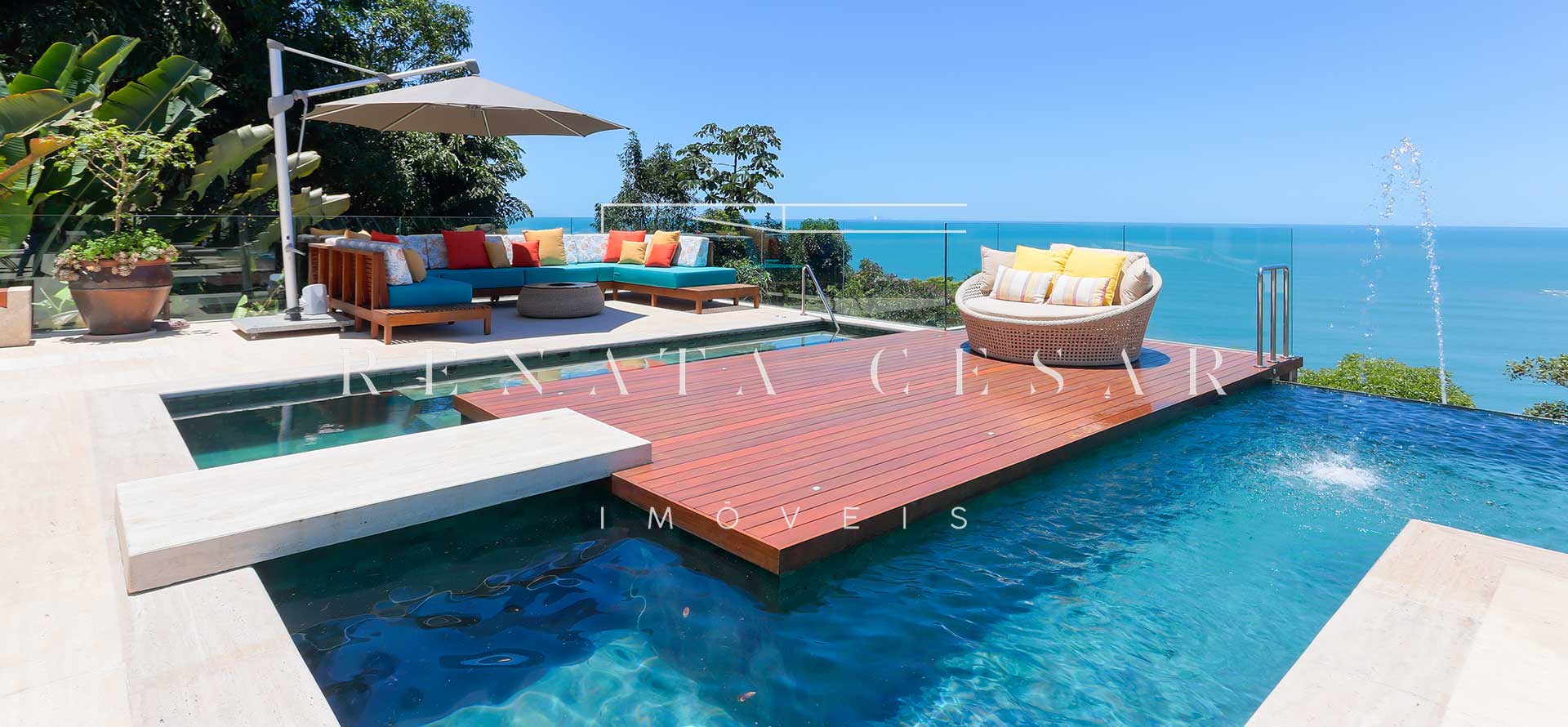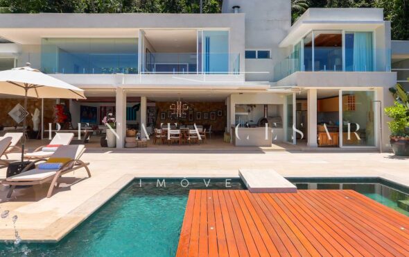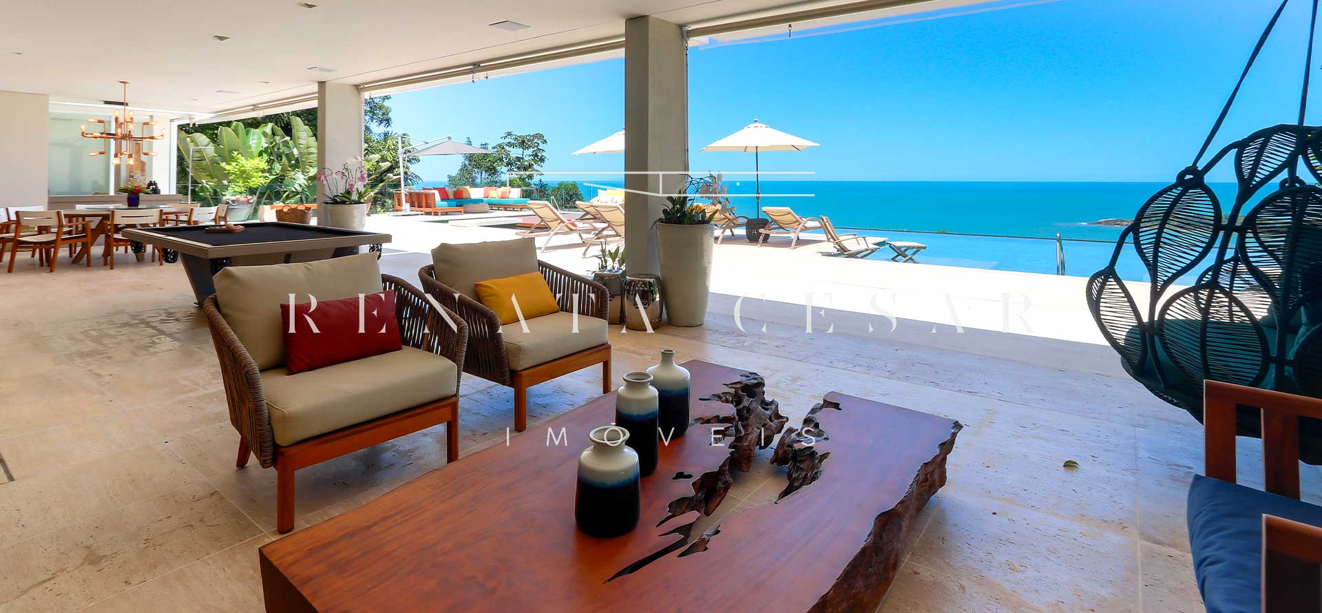 Ver foto na galeriaSeja pela mata, pelo mar, pelo céu, ou pelo design: tudo nesta casa comunica sofisticação e conforto. Há um living integrado com pé-direito duplo, sala de estar e jantar, mesa de bilhar e capricho em todos os detalhes. O home theater é enorme, assim como a cozinha gourmet que tem vista para a área externa.