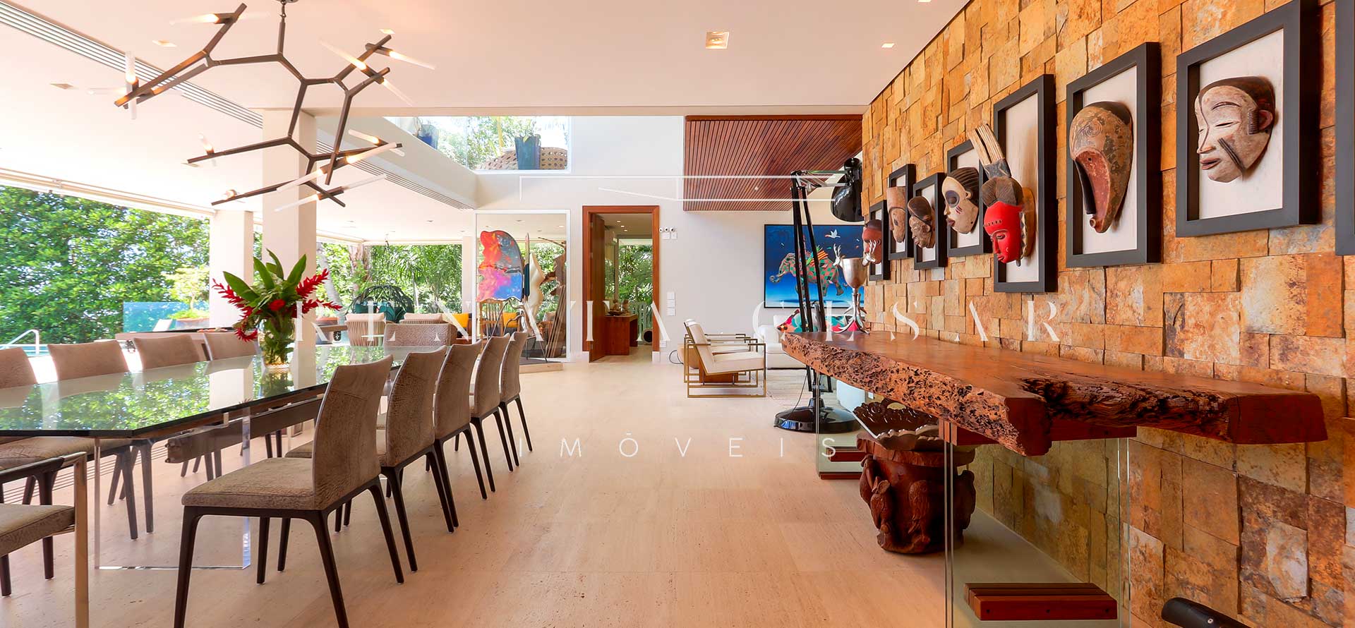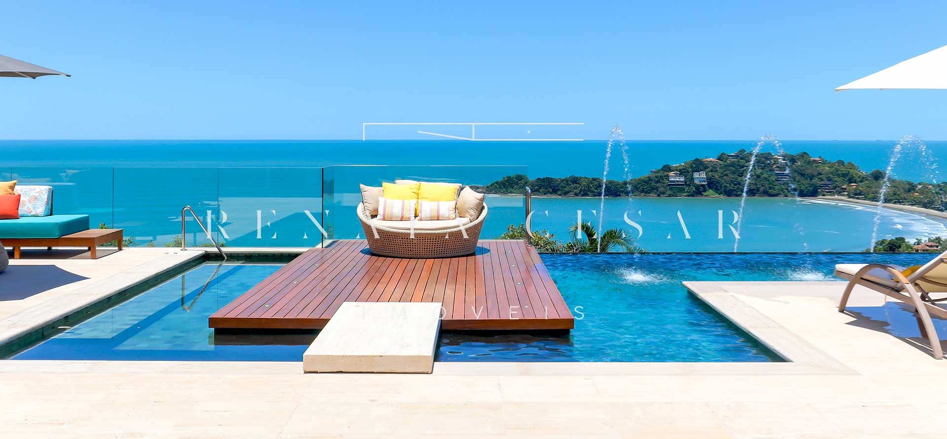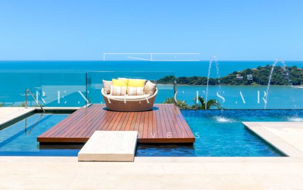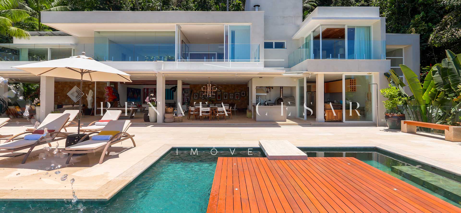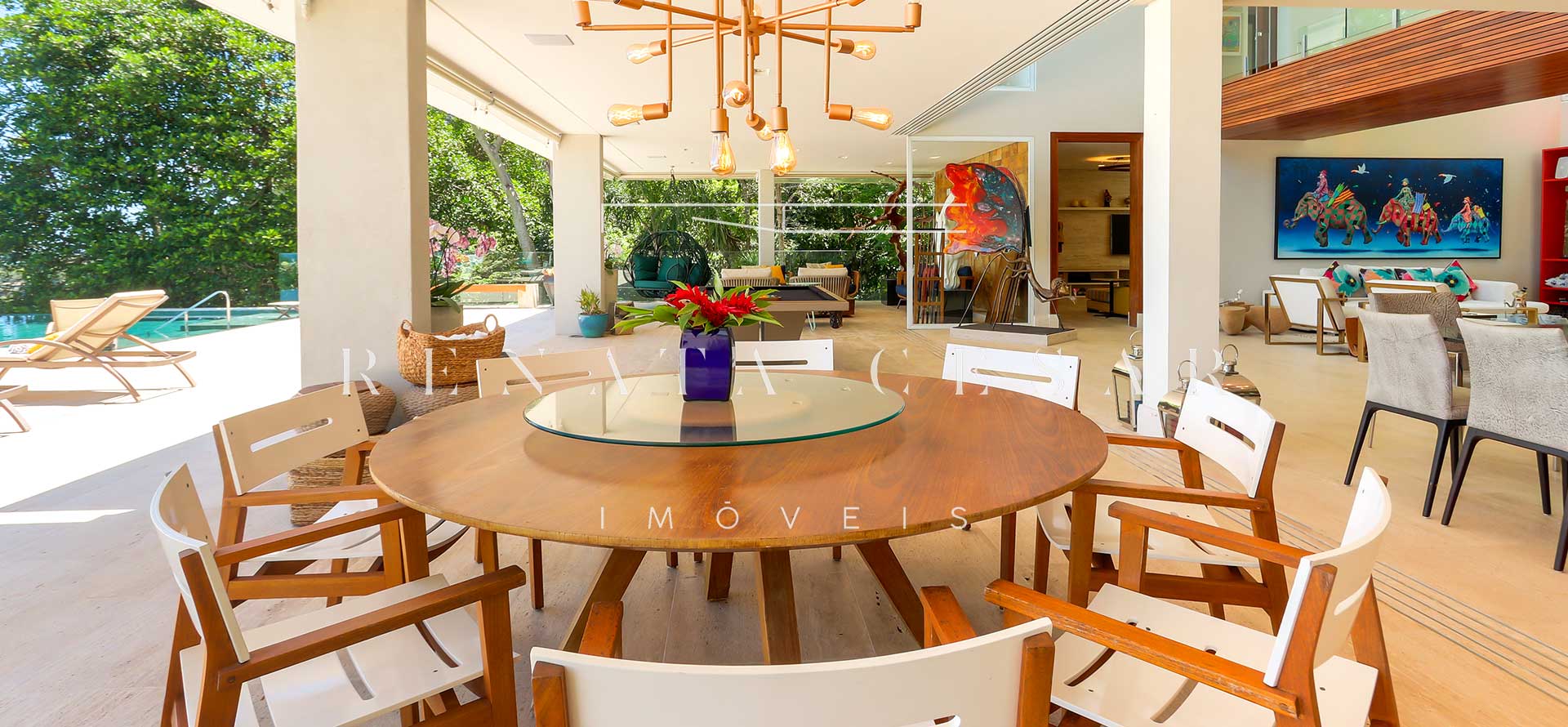 Ver foto na galeriaSeja pela mata, pelo mar, pelo céu, ou pelo design: tudo nesta casa comunica sofisticação e conforto. Há um living integrado com pé-direito duplo, sala de estar e jantar, mesa de bilhar e capricho em todos os detalhes. O home theater é enorme, assim como a cozinha gourmet que tem vista para a área externa.