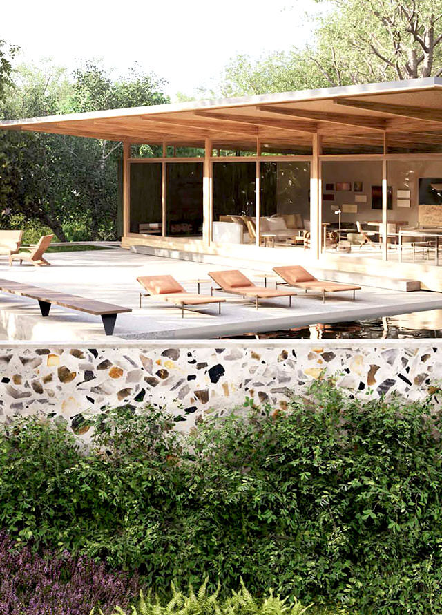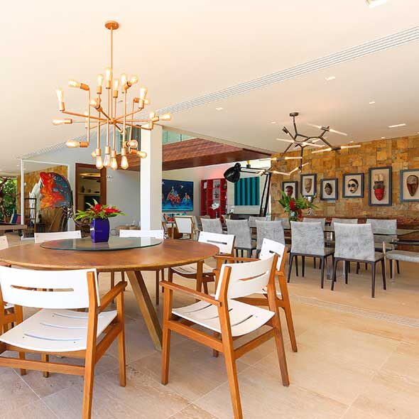 O design contemporâneo não deixa de lado materiais naturais como a madeira, tijolos e pedras, misturando texturas diversas.